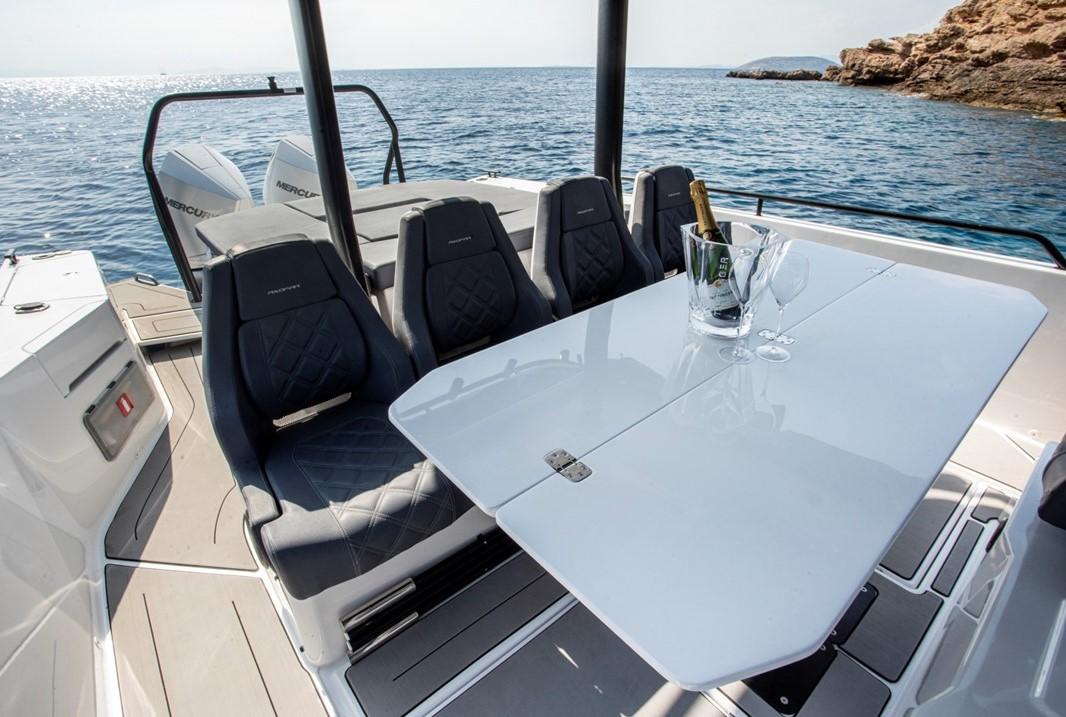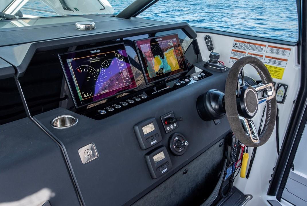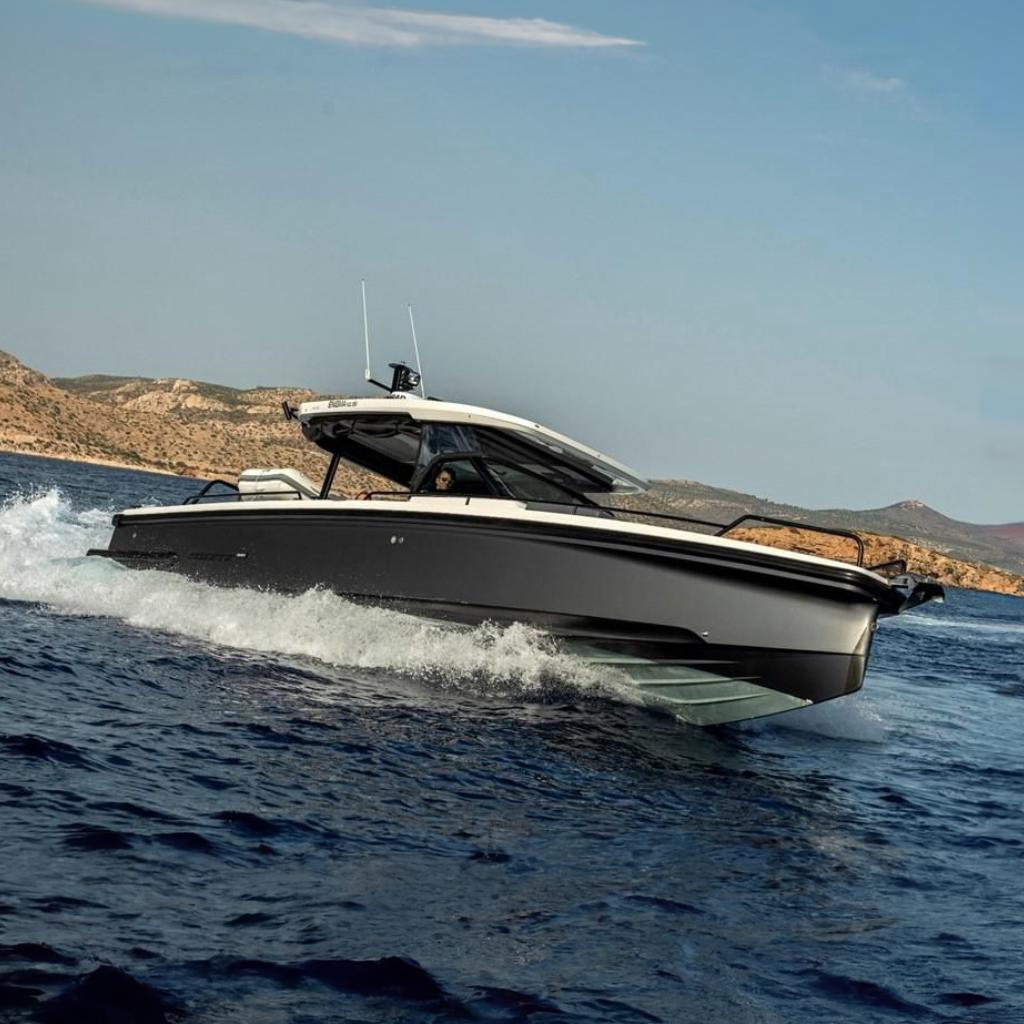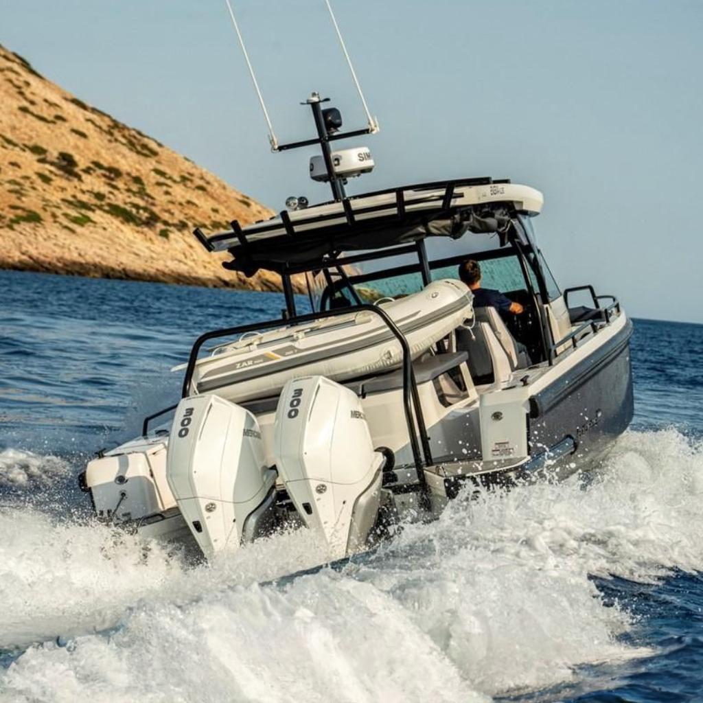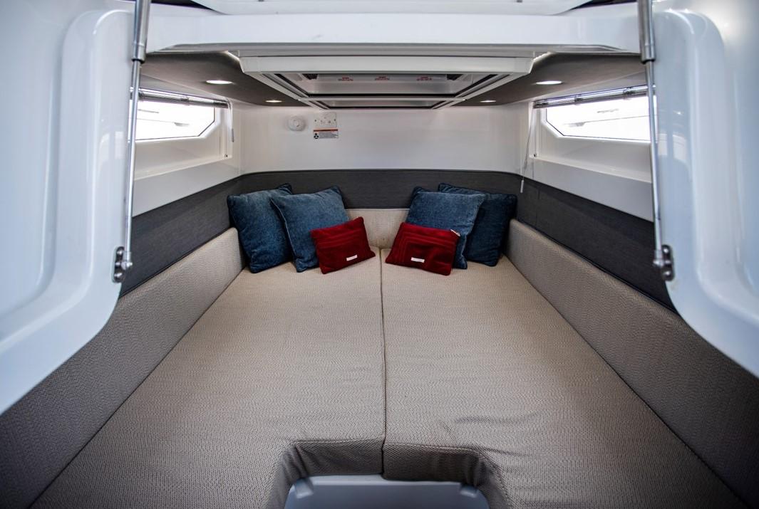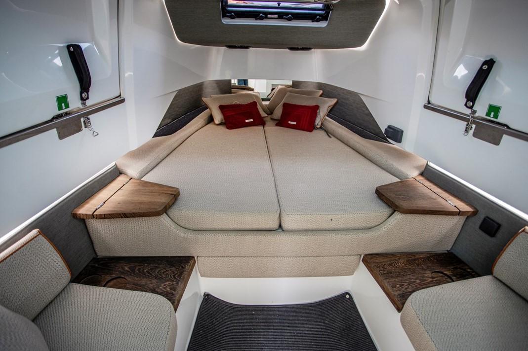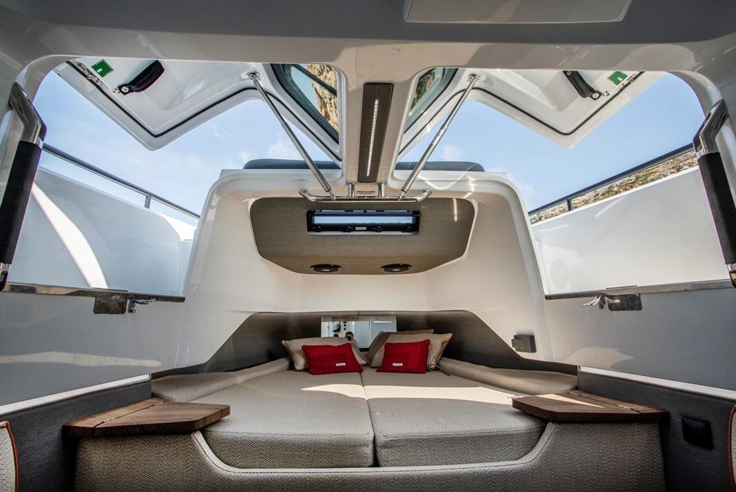 THIS LISTED BOAT AT A PURCHASE PRICE OF EUROS 220K ex VAT ,(AMONGST OTHER IMPRESSIVE OPTIONAL EXTRAS) FROM AFT CABIN CONFIGURATION (WITH SUNBED) BOASTING 2 COMFORTABLE DOUBLE BERTHS WITH FORWARD CABIN GULWING DOORS, RADAR AND SPRAYHOOD WITH EXTENDED CANOPY.