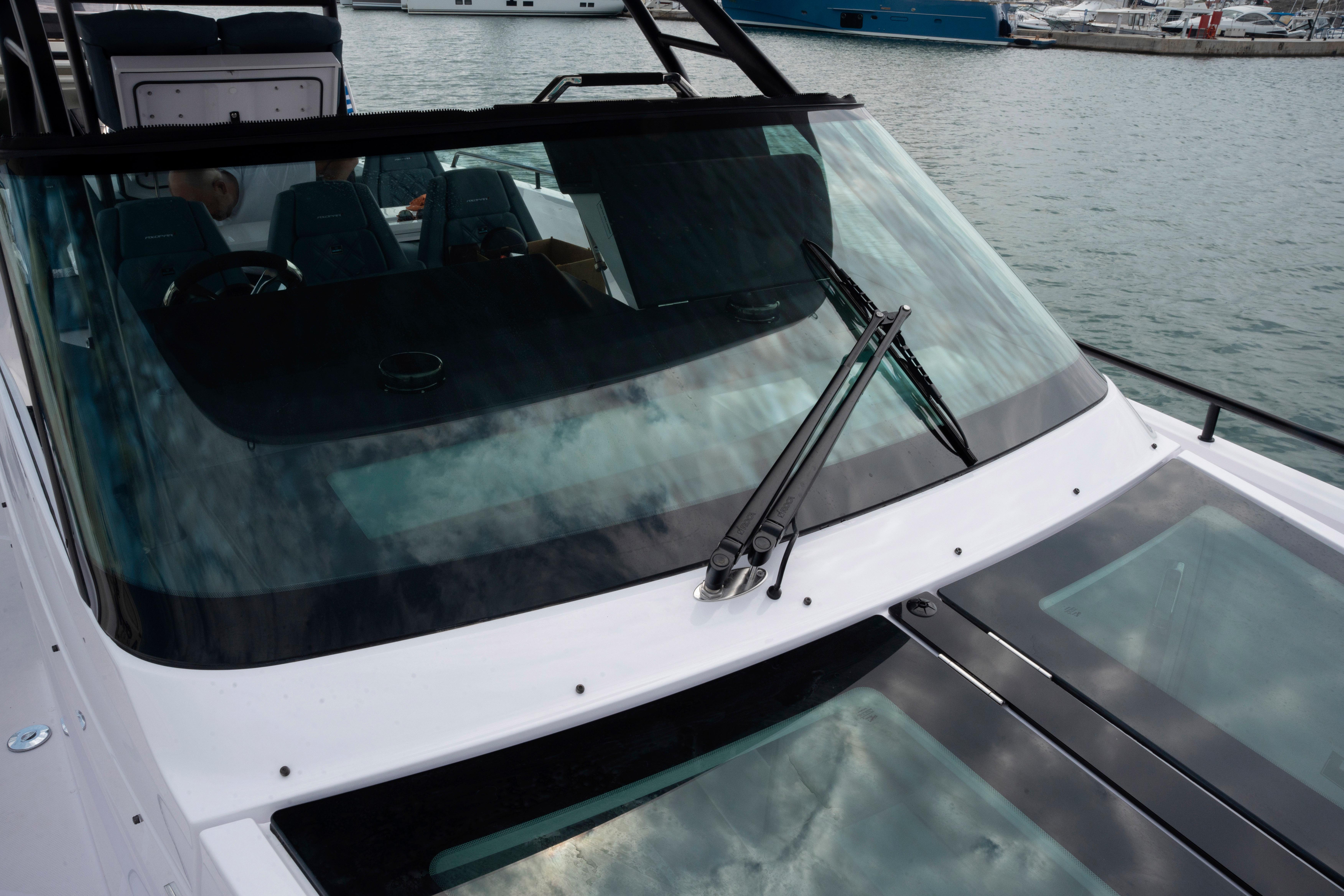 - Toughened glass windscreen and side windows in light green tint w. illuminated 37 signature