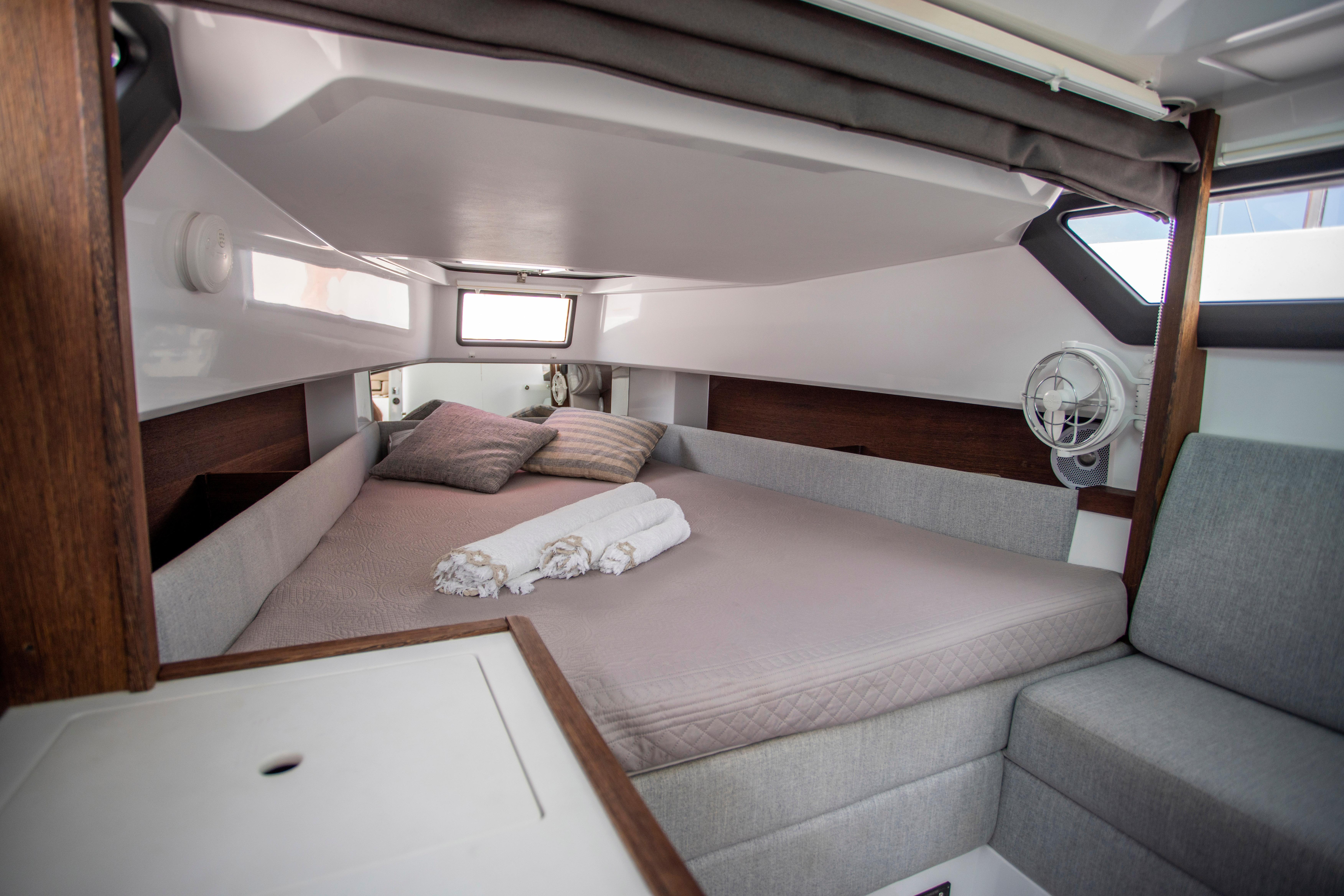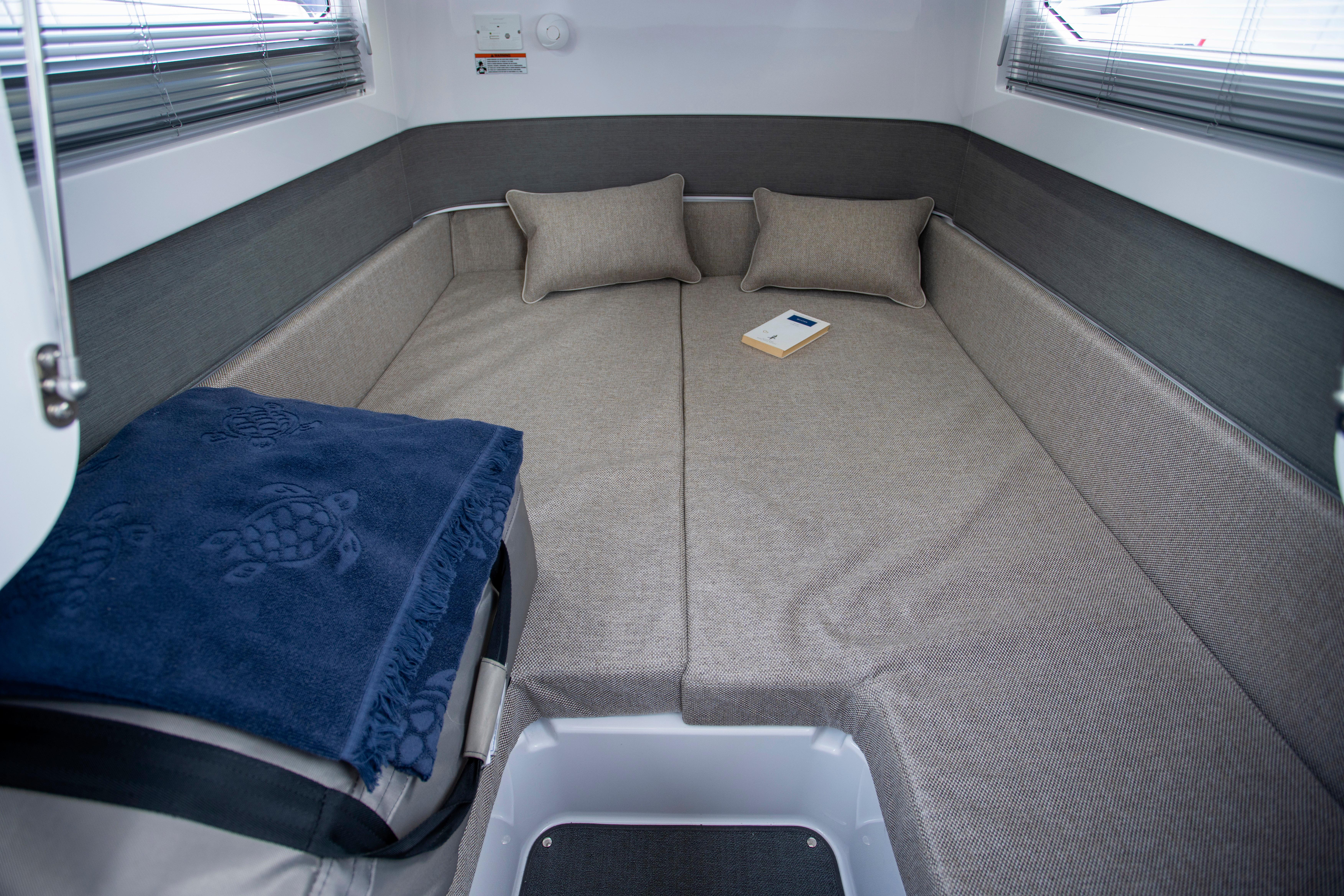 - Built-in electric flush toilet under L-sofa w. septic tank 70l and deck/hull outlets