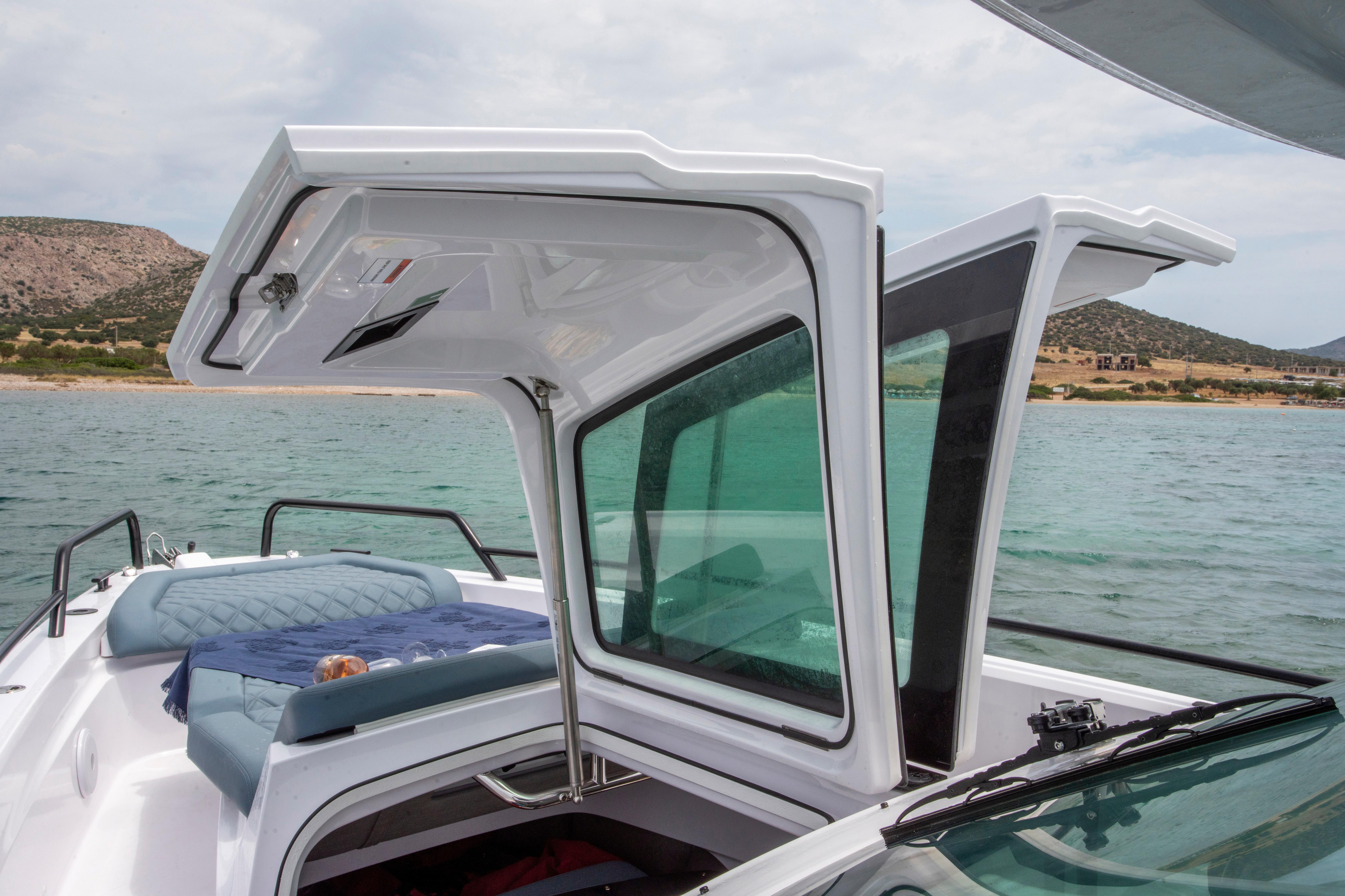 Despite that it is a Category B Adventure Cruiser, Axopar has received some of the most rigorous testing under perhaps the harshest weather conditions: BoatTest.com (April 2019) noted testing the older series 28 Cabin in "one of the roughest conditions [they]’ve ever tested a boat in," with the boat maintaining stability and dryness, cutting through waves without pounding. This reflects its ability to withstand significant chop and swell. However, when and if going airborne in messy chop, all Axopar boat models offer soft landings and shock absorption resisting fatigue and handling repeated wave impacts with ease.