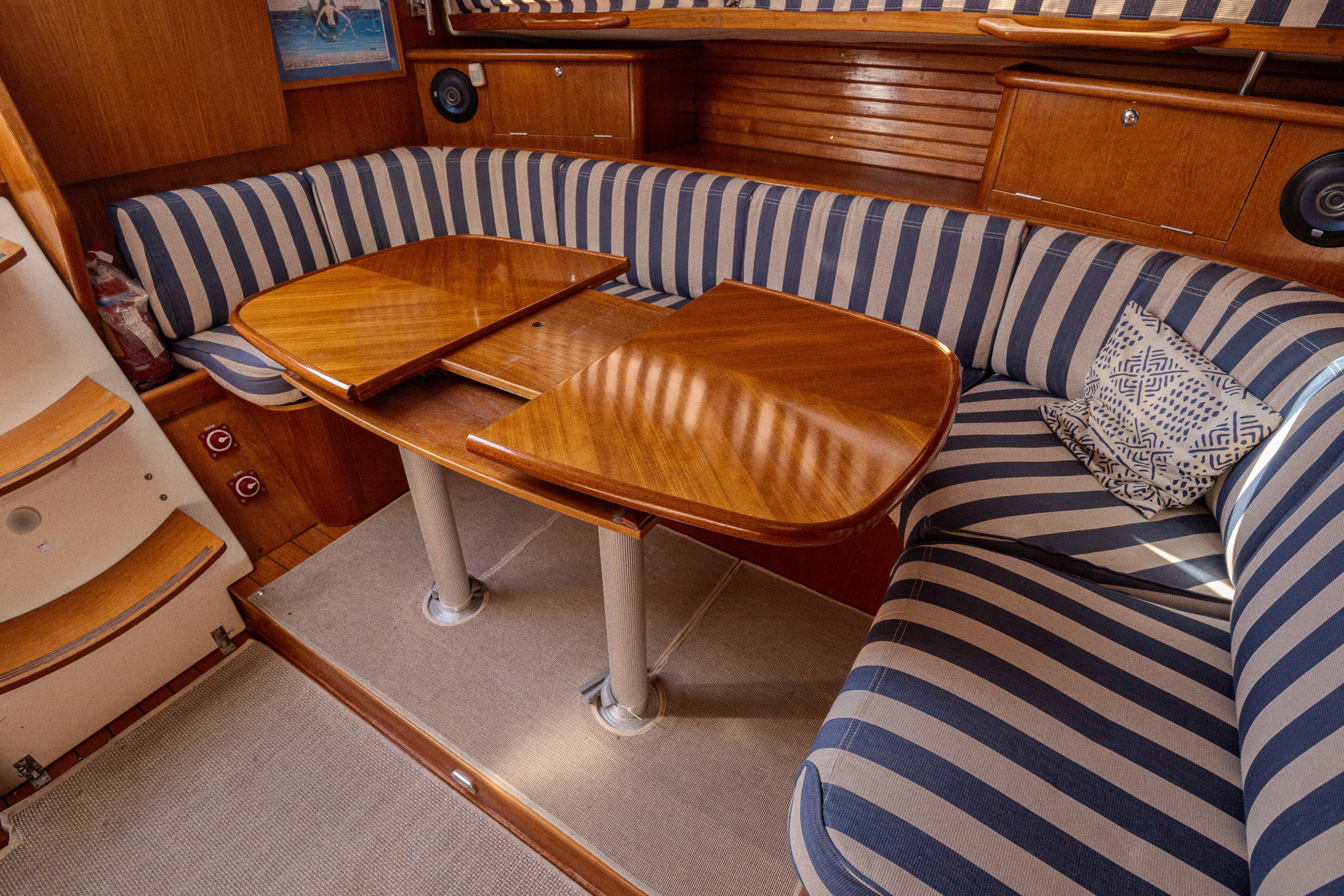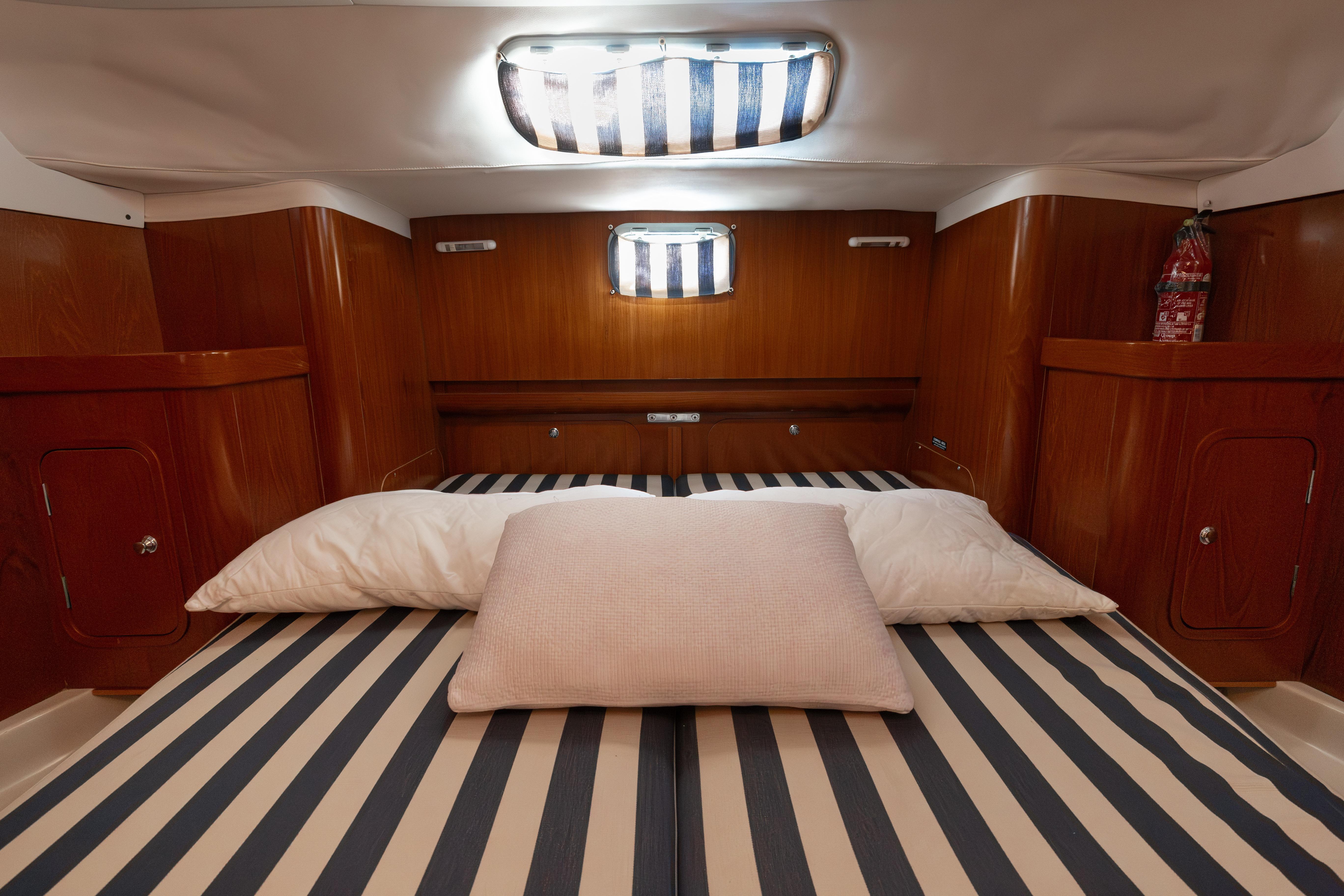 Inside, the French approach to layout shines through in thoughtful ergonomics and intelligent storage—plenty of lockers, cupboards, and cleverly utilised spaces that create a genuinely comfortable, practical liveaboard environment suited to long Mediterranean seasons or longer voyages.