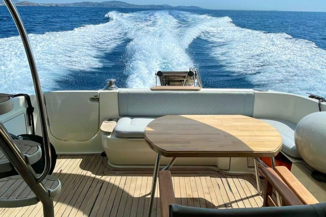 Recent upgrades include new grey exterior cushions and a complete battery replacement. She is equipped with a Fischer Panda generator, air conditioning, solar panels providing energy autonomy at anchor, and a three-zone sound system.