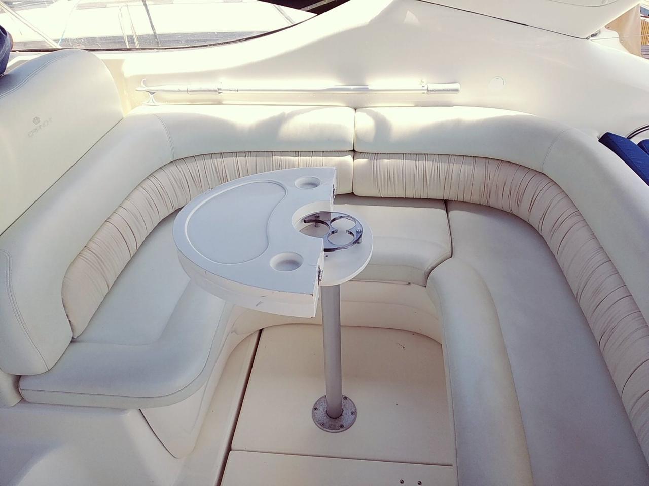 Aside from that, the other notable features of the 39 Endurance are her large cockpit and the storage compartment under the aft sun pad designed to stow an inflatable tender. With so much of the Cranchi’s length given over to the cockpit, it’s not surprising that the interior is smaller than other express cruisers in her class. It’s also unusually arranged—a di nette is forward rather than the traditional stateroom, and the only sleeping quarters are aft in the private mid-cabin. All of this adds up to a superb day boat—a design that will appeal to those placing more emphasis on fun in the sun than on extended cruising. Highlights include an exceptional helm layout, anchor/windlass locker with fender storage, excellent handling, and a foredeck sun pad.