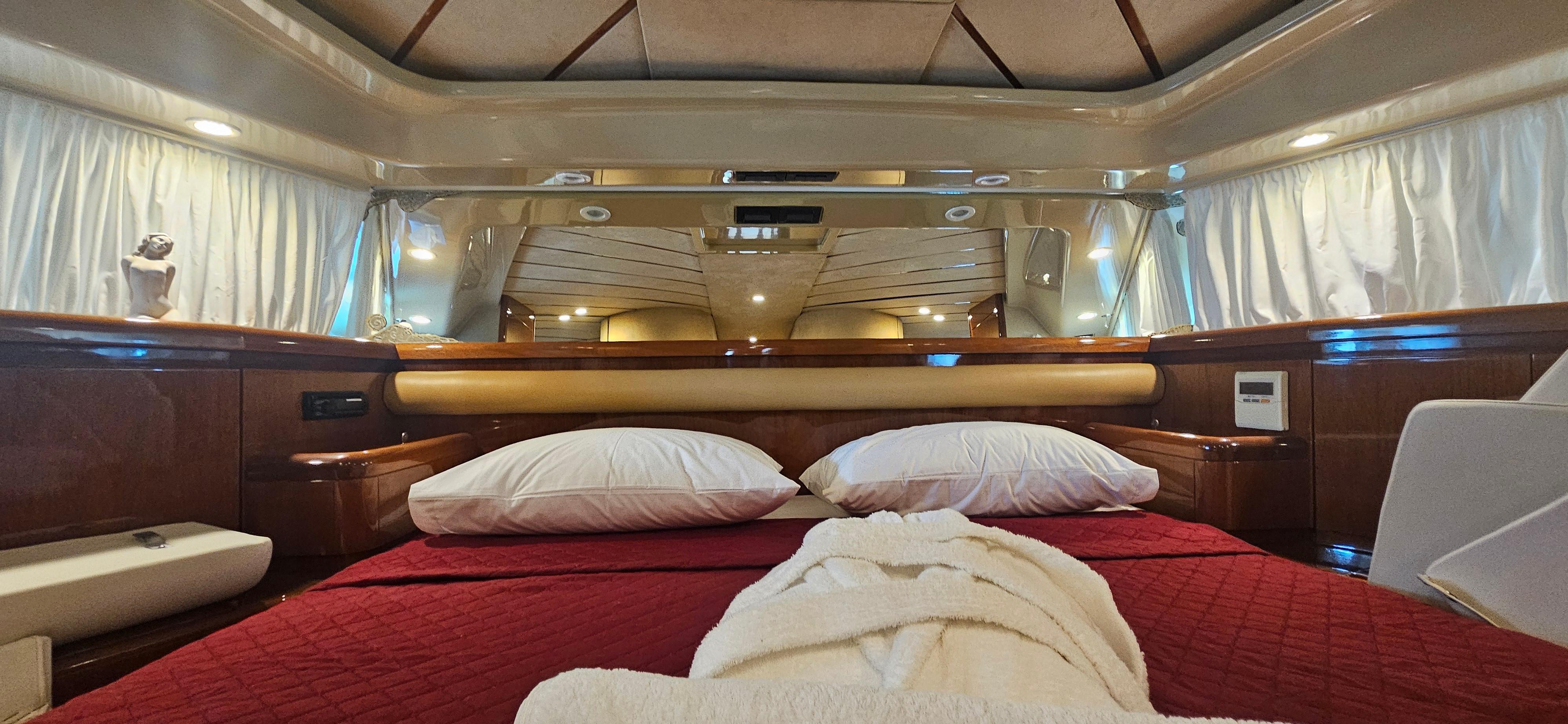 This Ferretti 620 is a genuine Italian, classic yacht. Its uniquely crafted interior and smooth exterior design is proof of this. With 3 cabins she can accommodate up to 6 guests.