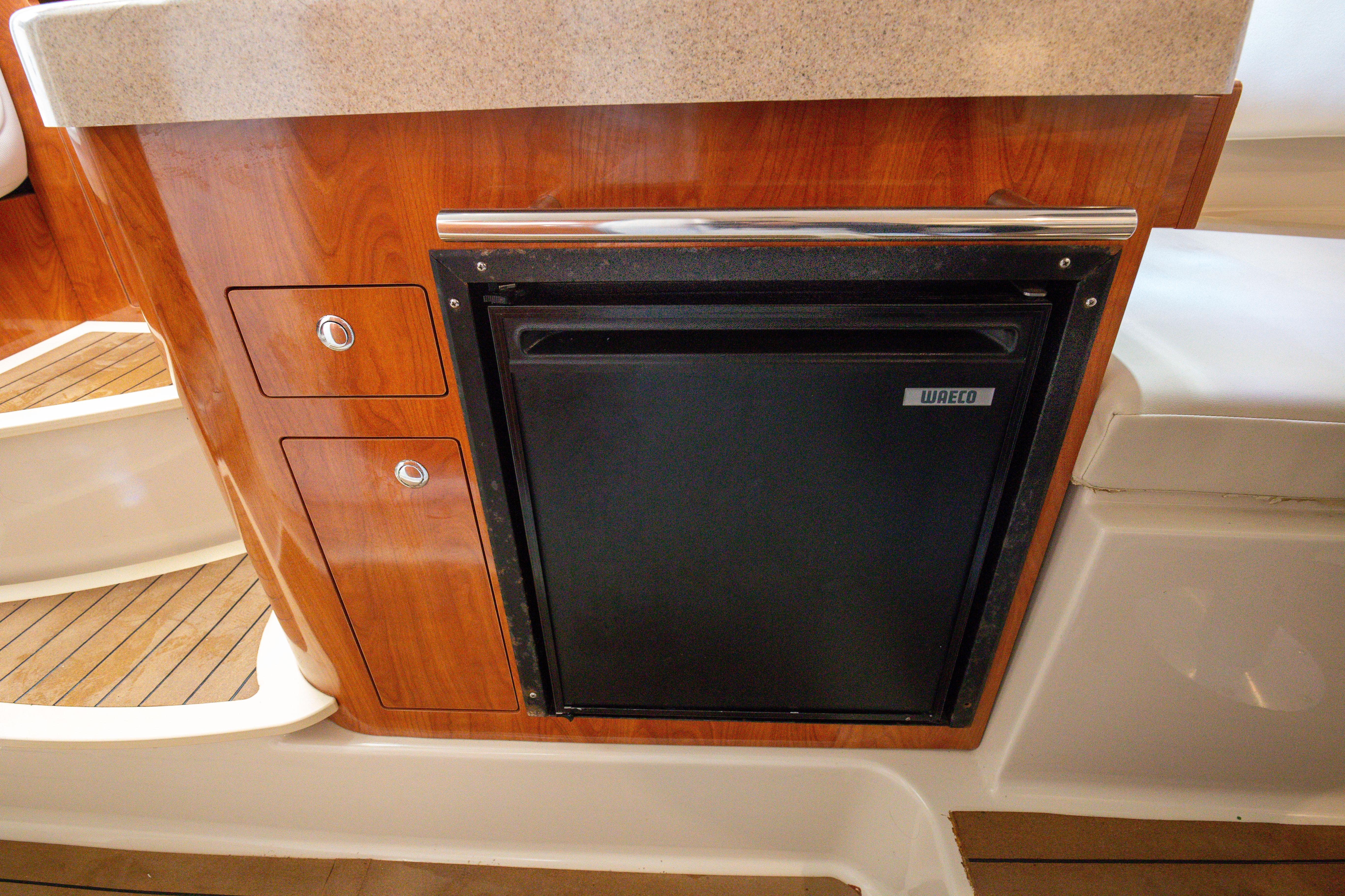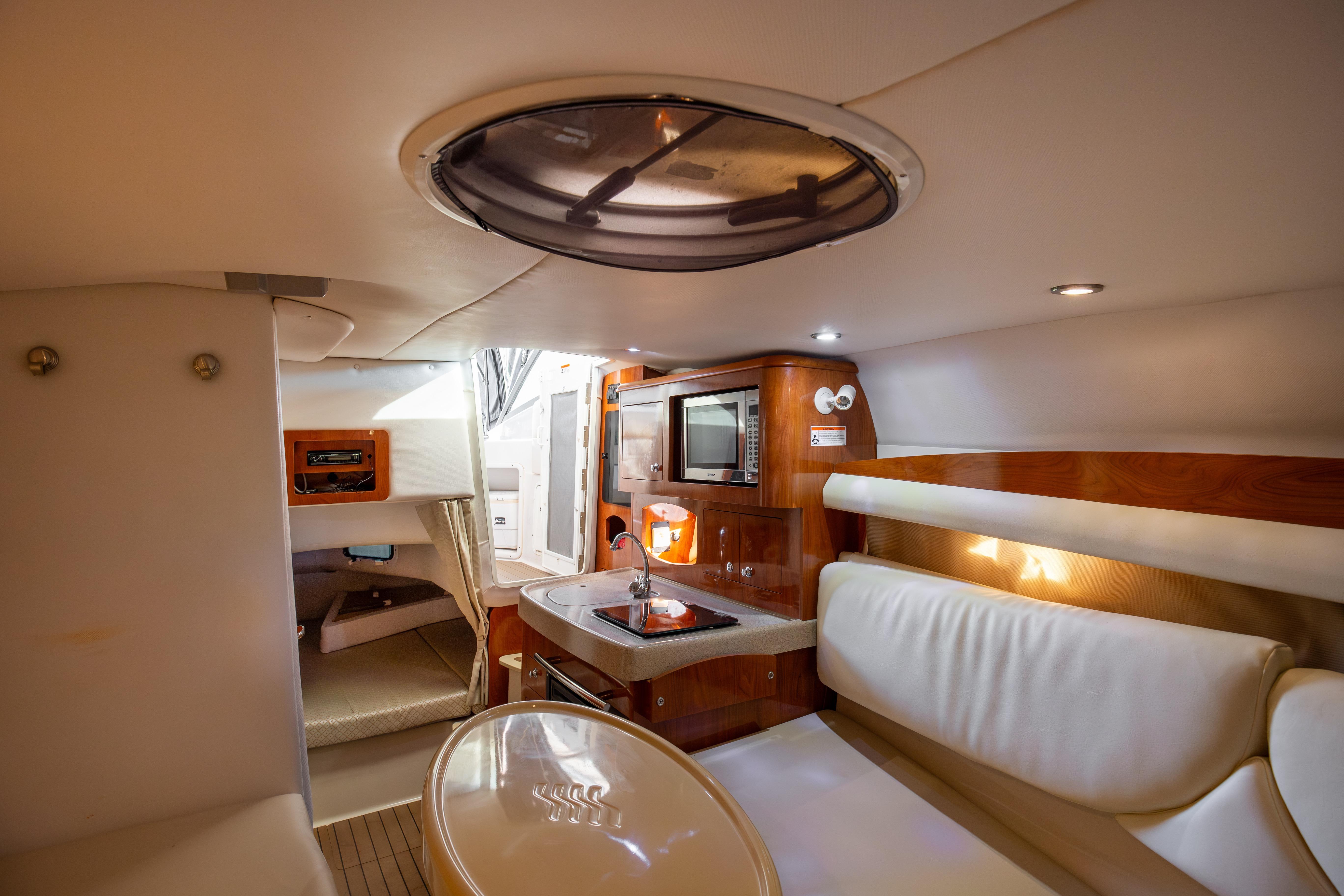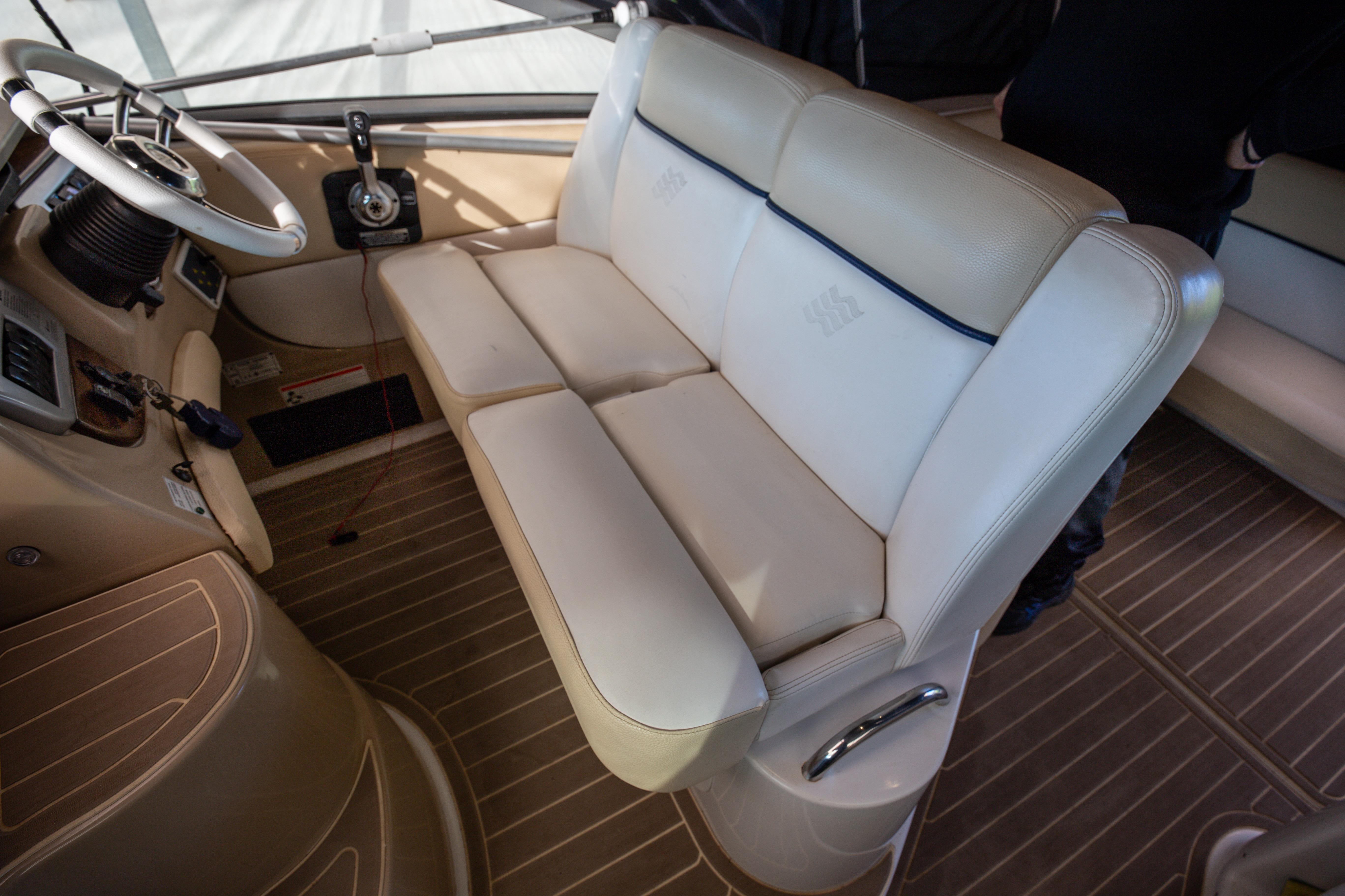 The inboard shaft-drive Volvo Penta engine has had its plastic stock shaft replaced and upgraded to a metal one making it a durable one-of-a kind. Her upholstery is from real leather.