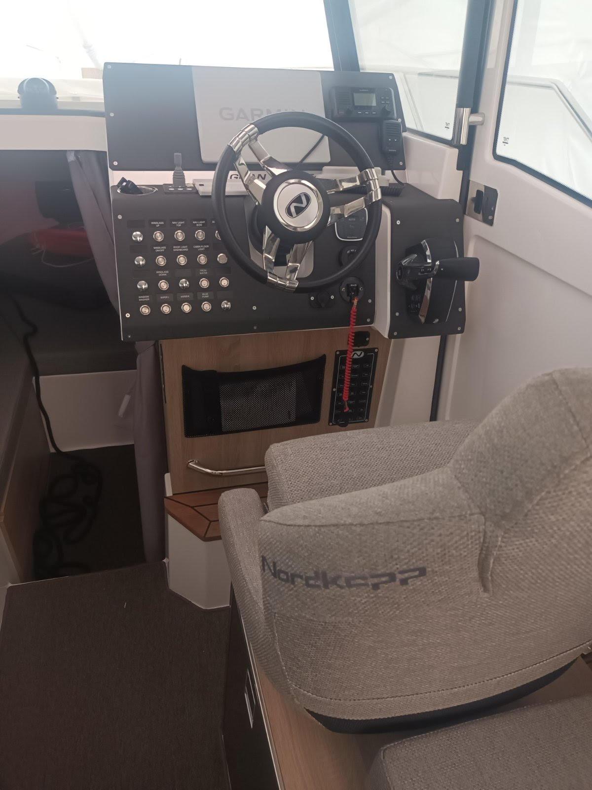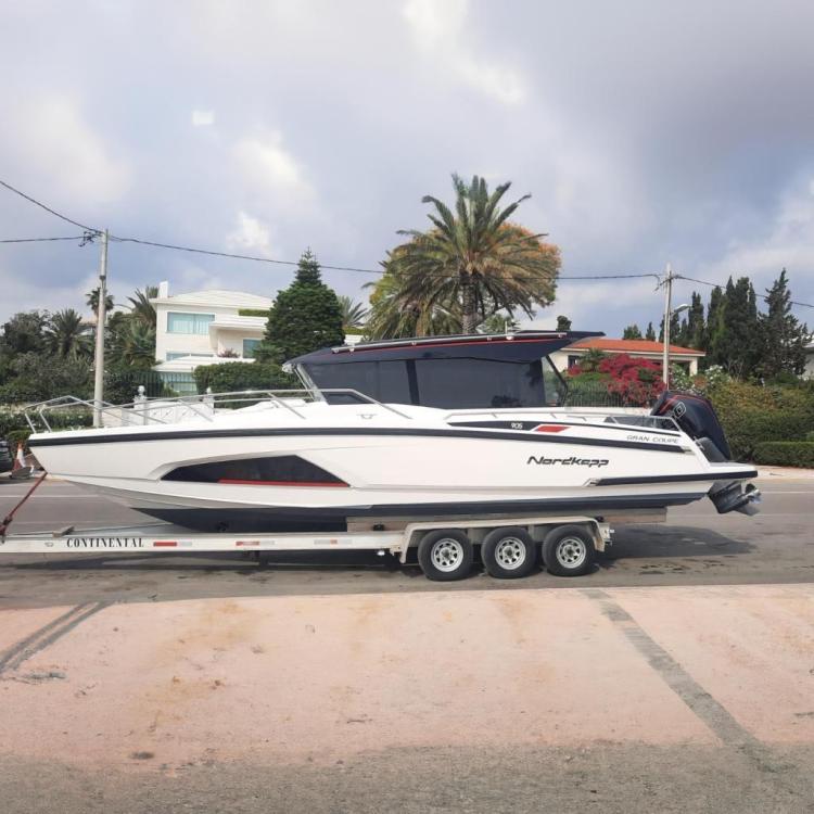 The Gran Coupe 905 is a masterpiece of the Norwegian Shipyard NordKapp and offers top quality of construction and luxurious interior space with large bow cabin with seperate toilet , super comfortable bow and aft sun lounges and cockpit seats are removable to offer enough space and relaxing time. She is slightly used only with 23 hrs of operation with an outboard motor of 450 hp MERCURY VERADO RACING which is the ideal for great performance and accelaration , comes with many extras .