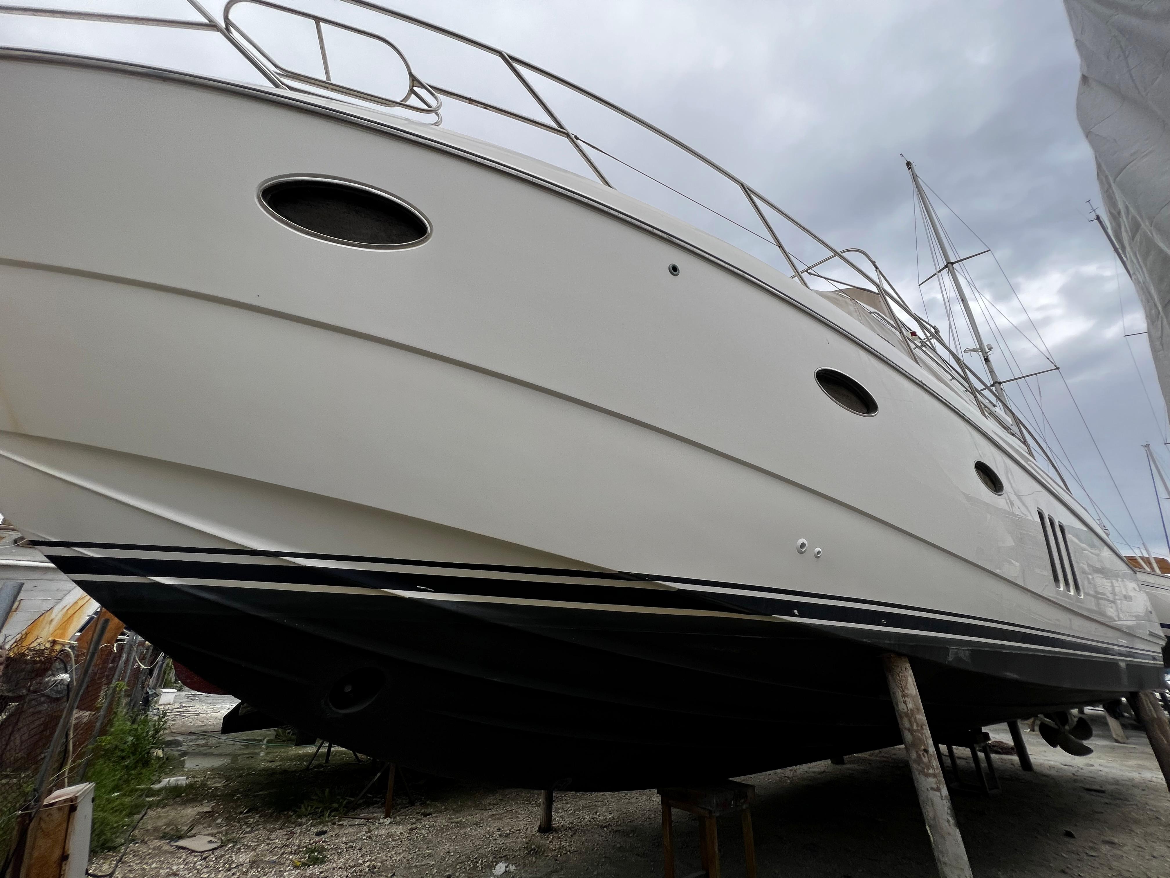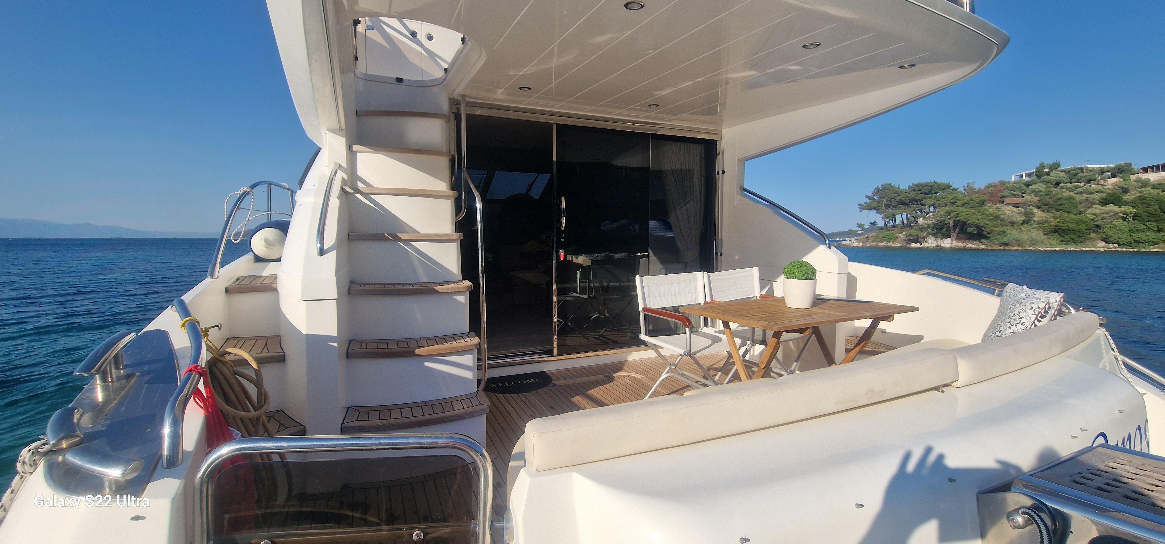 - Teak-laid deck,cockpit,transom platform and flybridge stairway and stairs to side decks