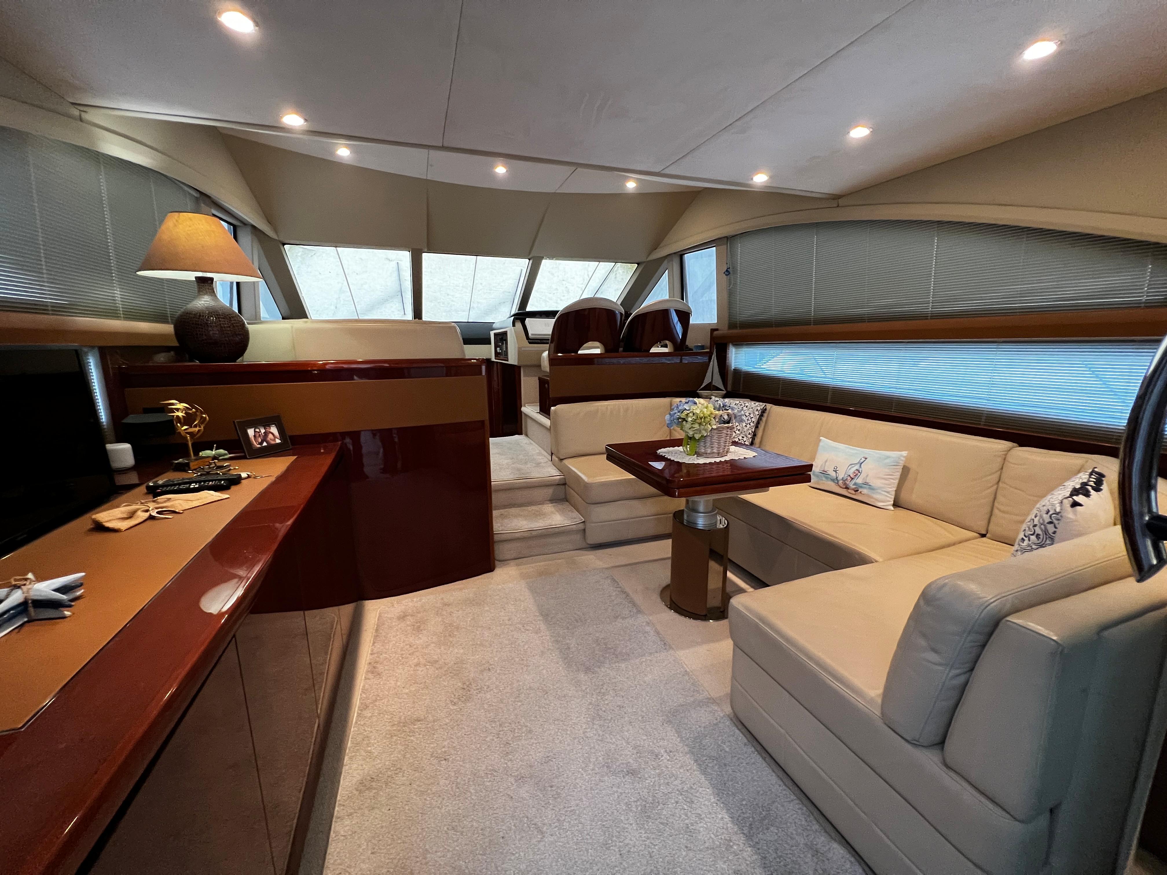 The Princess 50's flybridge with a wetbar, wide side decks, a teak laid cockpit and bathing platform with stowage for tender or wetbike, make living onboard a pleasure and long-range cruising is made effortless by the latest deep V hull design resulting in unparalleled sea keeping and performance.
