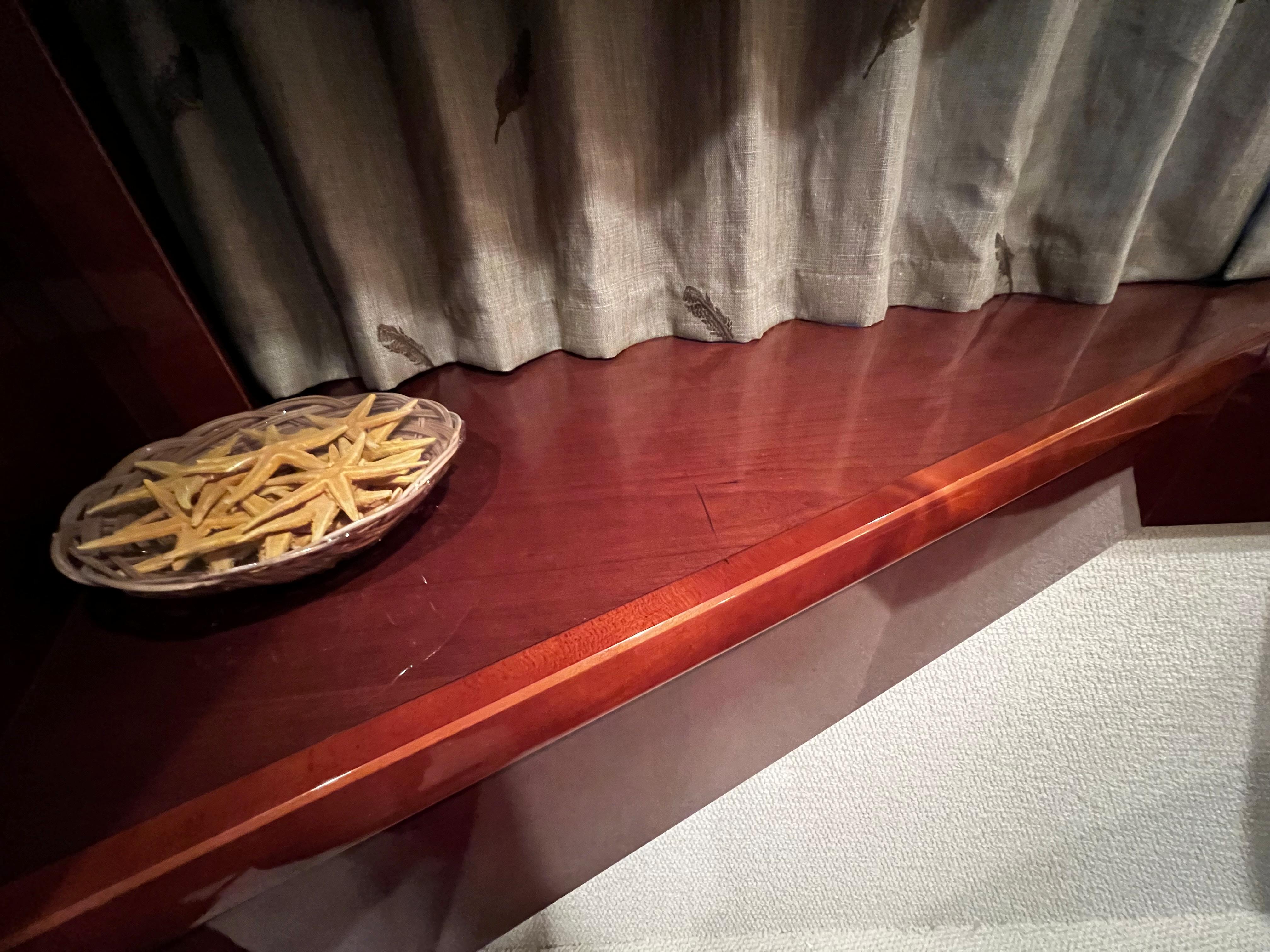 - Wet bar with electric barbecue, stowage, sink, hot and cold water supply