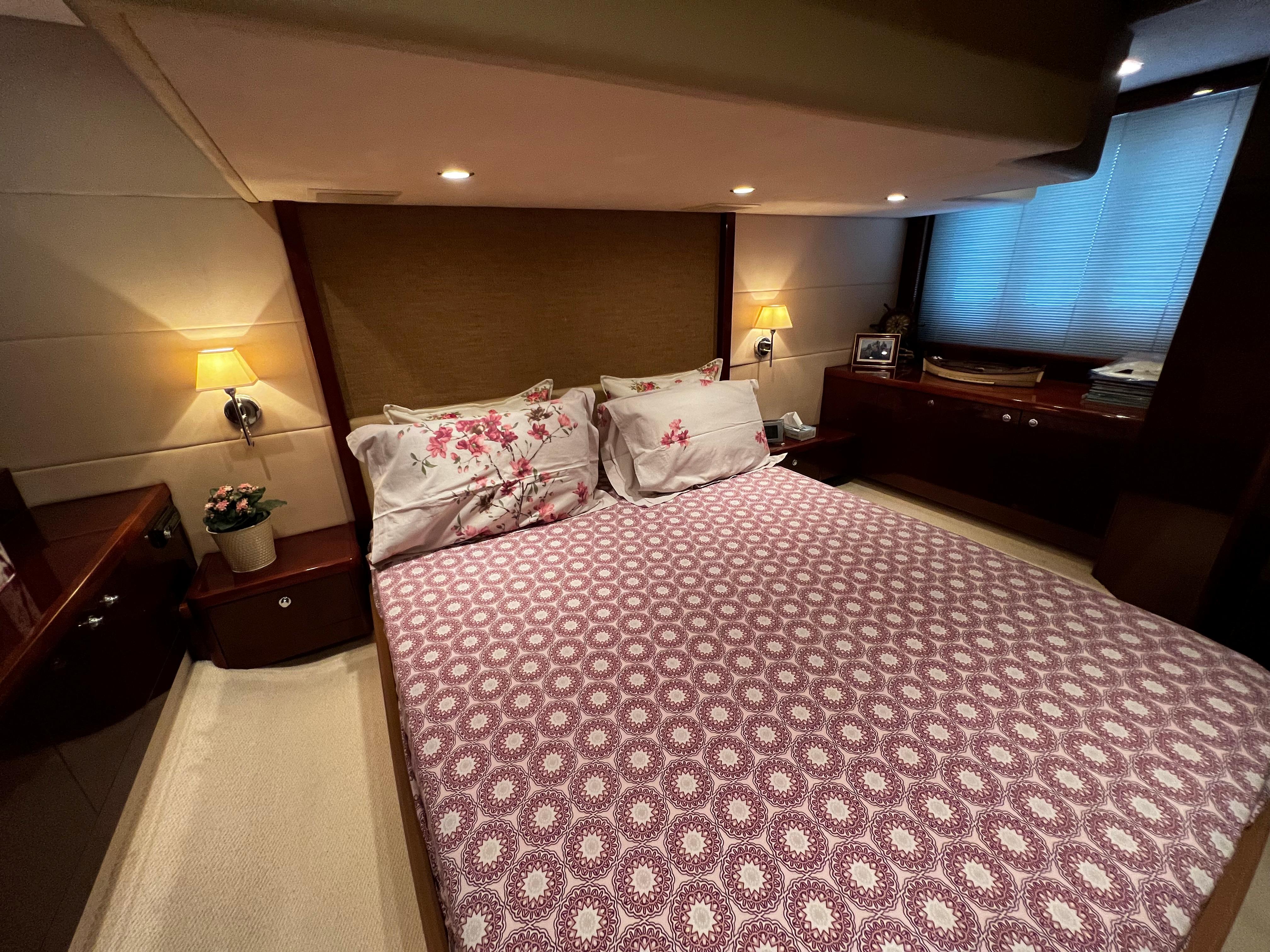The new Princess 50 is a further example of Princess' design ingenuity, maximising the available space and giving the impression of a much larger vessel. This beautiful flybridge yacht with its full width stateroom offers the owner a level of spaciousness and comfort never previously enjoyed on a yacht of this size. Expansive windows allow natural light to fill the saloon and dining area providing the perfect environment to relax or entertain. Below, the full width owners stateroom with en-suite bathroom makes maximum use of the available space and its signature vertical portlights give the cabin a light and airy feel. Furthermore the forward stateroom, again with en-suite bathroom, along with a generous twin berth cabin provides comfortable accommodation for up to 6 people. There is also the option to add a single berth aft cabin for crew or occasional guests. The Princess 50's flybridge with wetbar, wide side decks, teak laid cockpit and bathing platform with stowage for tender or wetbike, make living onboard a pleasure and long range cruising is made effortless by the latest deep V hull design resulting in unparalleled sea keeping and performance.