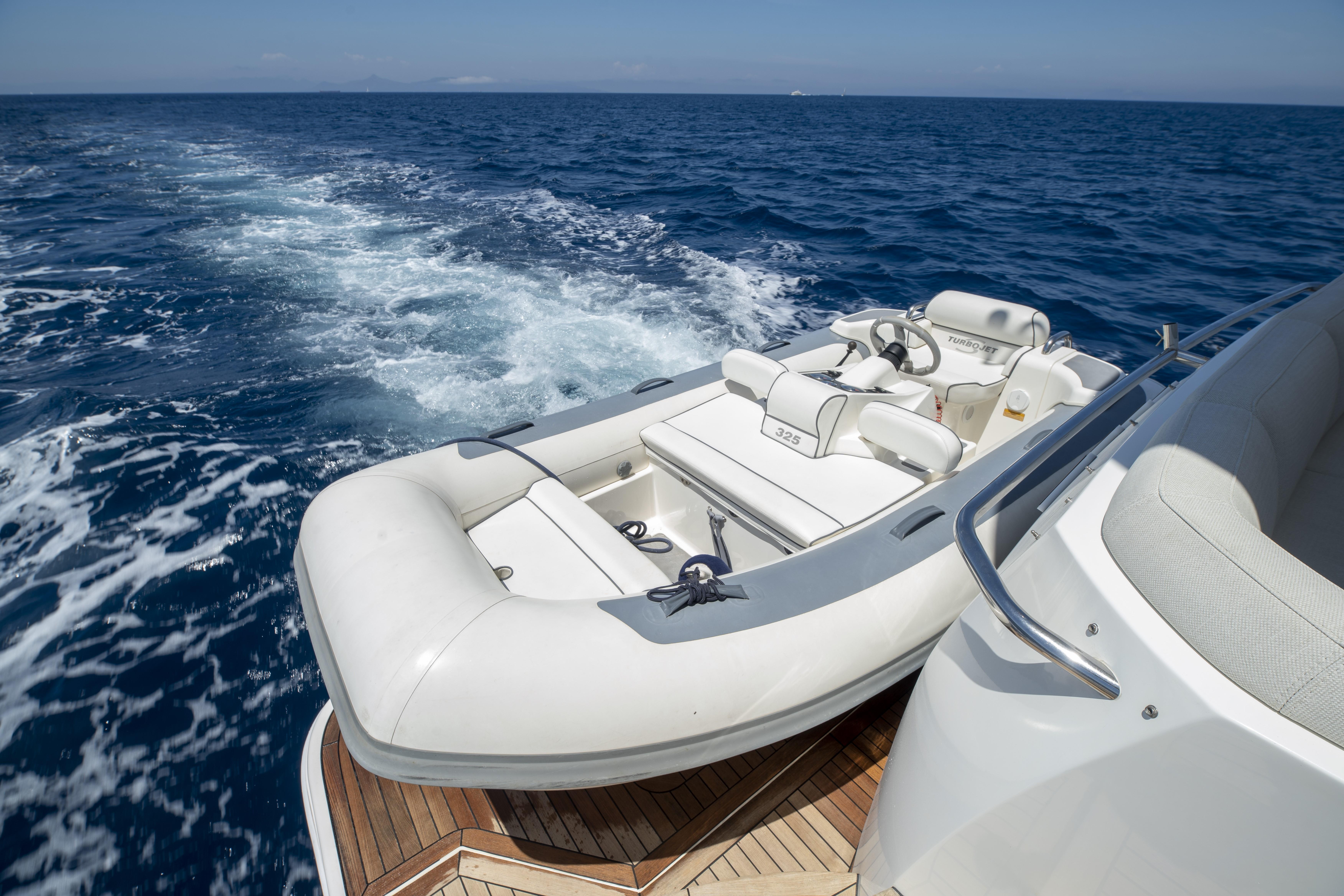 The most richly specced Princess 56 in Europe with 2x800HP Volvo engines, a Seakeeper gyro stabilizer, hydraulic bimini top, hydraulically lowered rear platform, a watermaker, bow and sternthruster. Also comes with a dinghy included in the price.