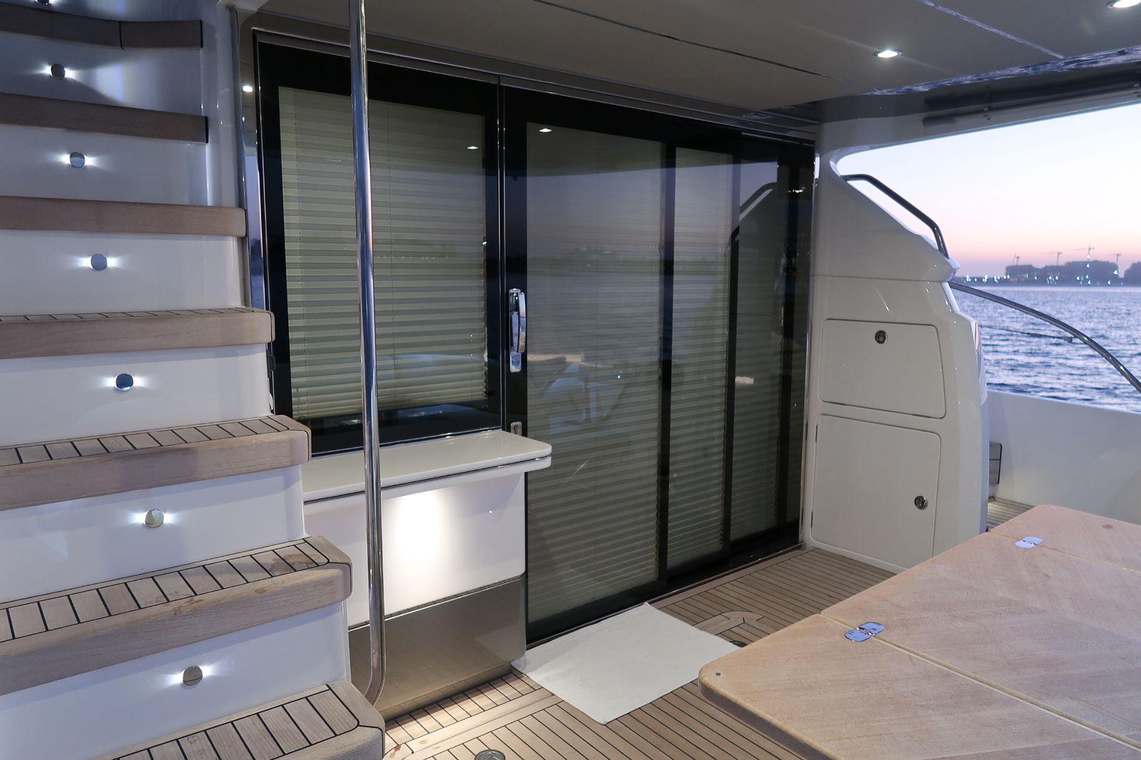 - Stainless Steel Framed Sliding Doors to Cockpit with Integrated Hinging Window Aft of Galley
