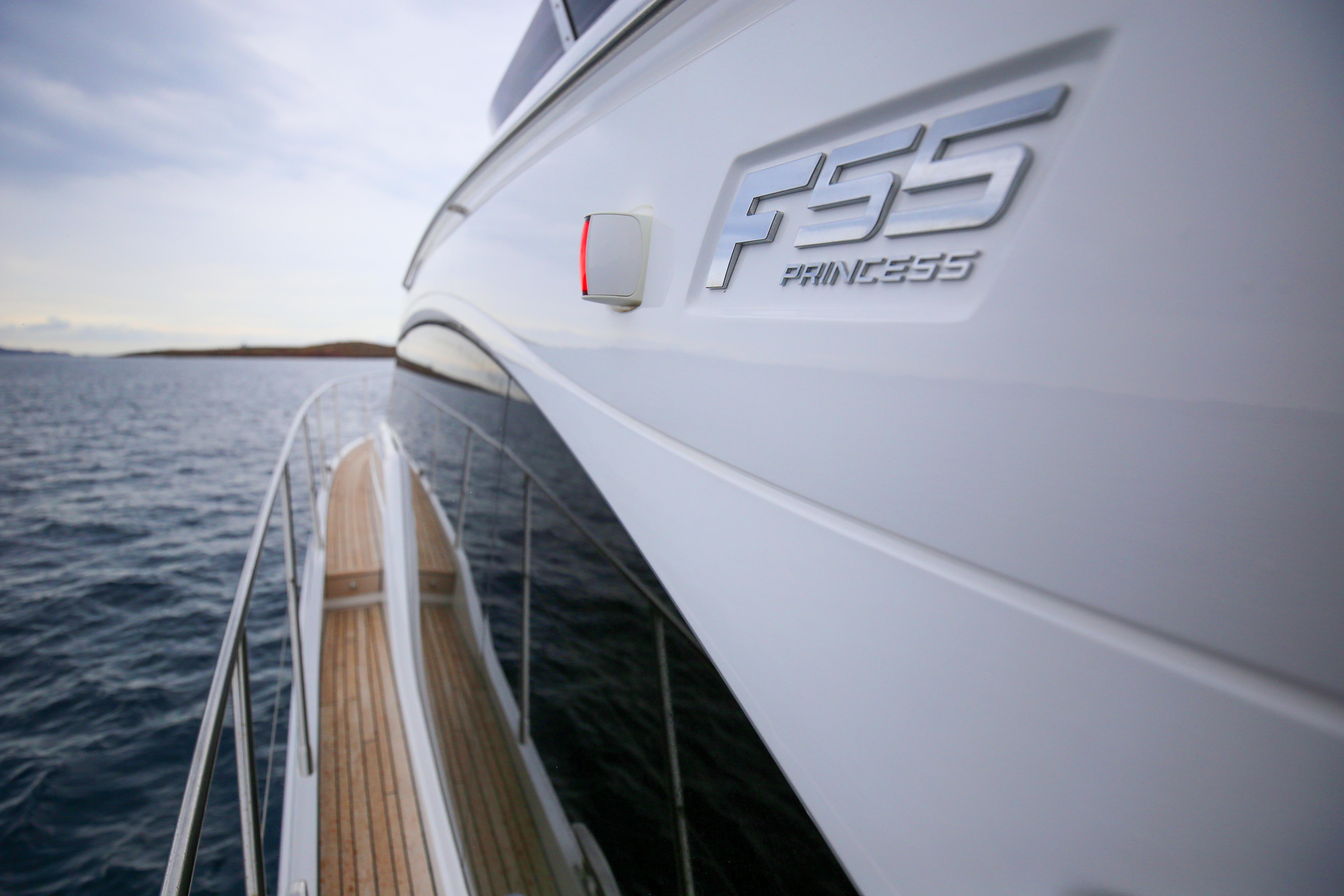 Introducing the stunning 2025 Princess F55, a remarkable motor yacht that combines elegance with performance. With an overall length of 17.6 meters, this vessel boasts a sleek fiberglass hull designed in a Deep Vee shape, ensuring smooth navigation through the waters. Powered by twin Volvo Penta D13-900 inboard engines, each delivering an impressive 900 horsepower, the F55 promises exhilarating speed and reliability, with only 83 and 84 hours of use. The yacht features a sophisticated joystick control for effortless maneuvering, complemented by an electric windlass for convenient anchoring. Accommodating up to four cabins and three heads, the interior is designed for comfort and luxury, making it perfect for extended voyages. The Princess F55 is a true masterpiece, offering an exceptional blend of style, power, and comfort for discerning yacht enthusiasts. Experience the thrill of the open sea with this exquisite vessel.