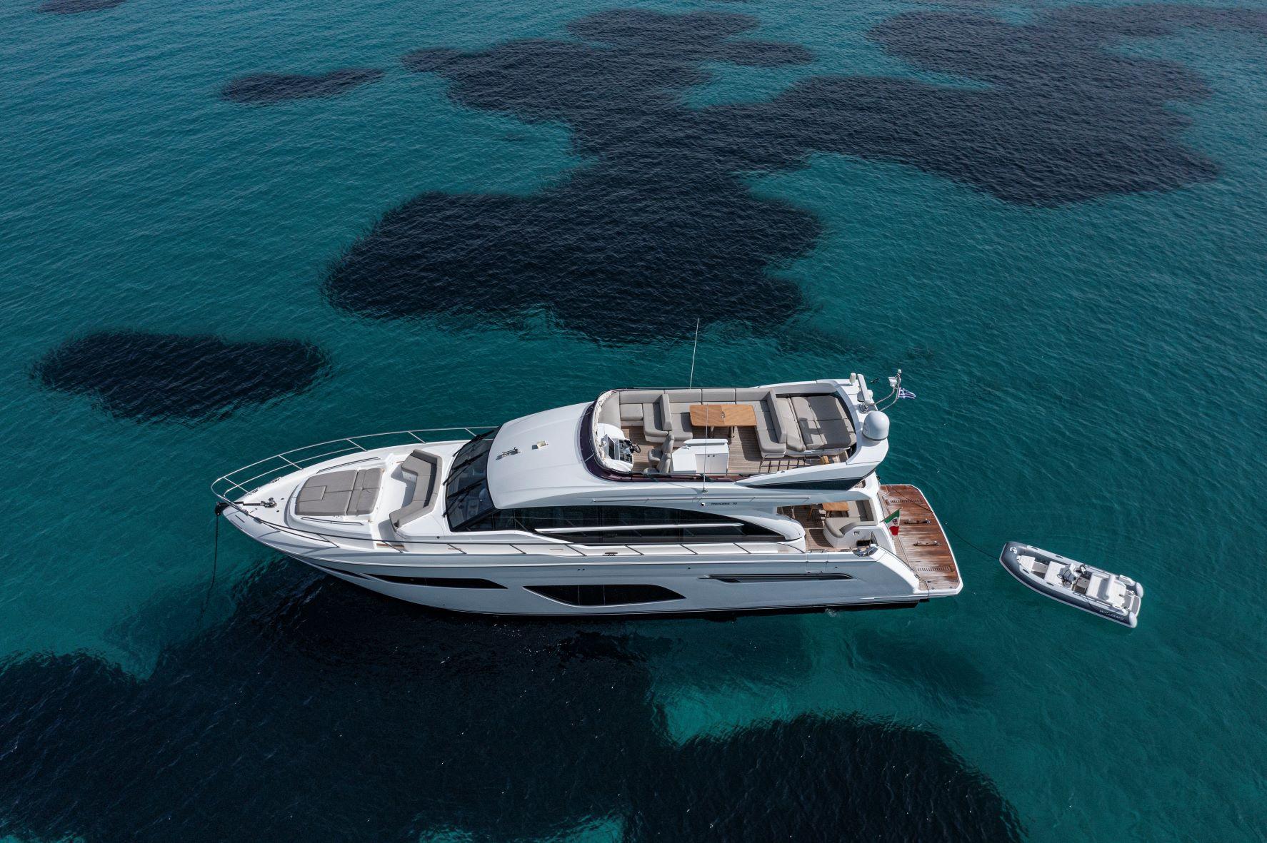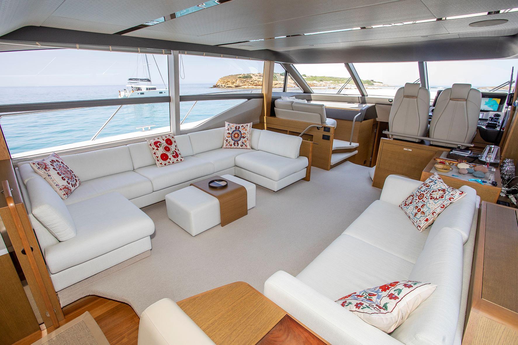 Together with fin stabilizers and a hydraulic bimini top, this F70 is the best you will find available right now.