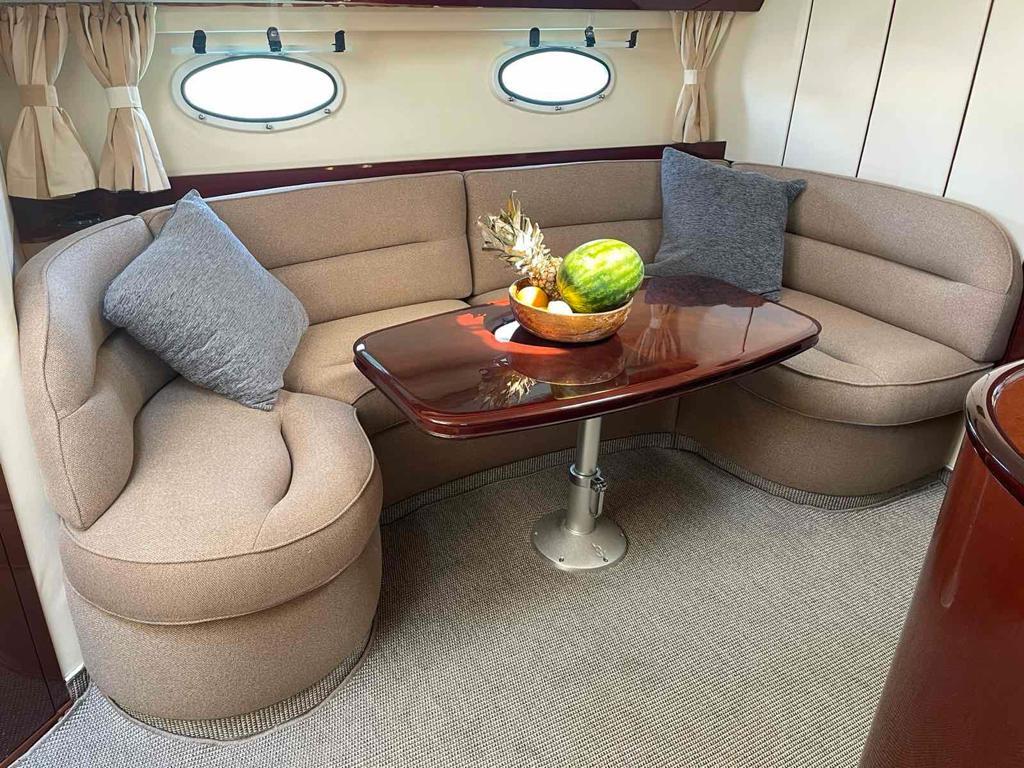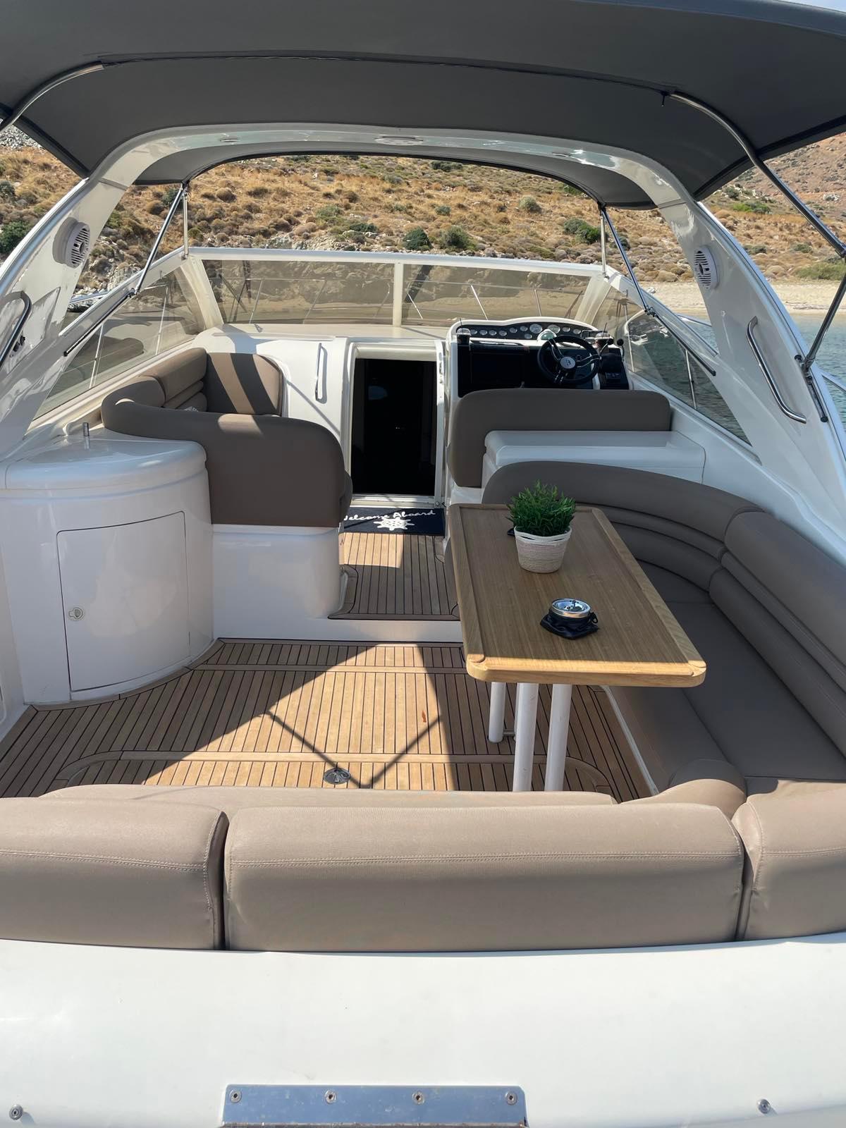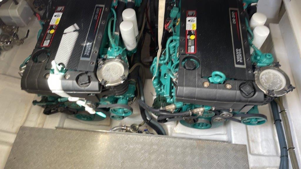 She contains 2x 310hp D6 VOLVO Penta engines, new 12mm massive teak in the entire cockpit and a sofa layout.
