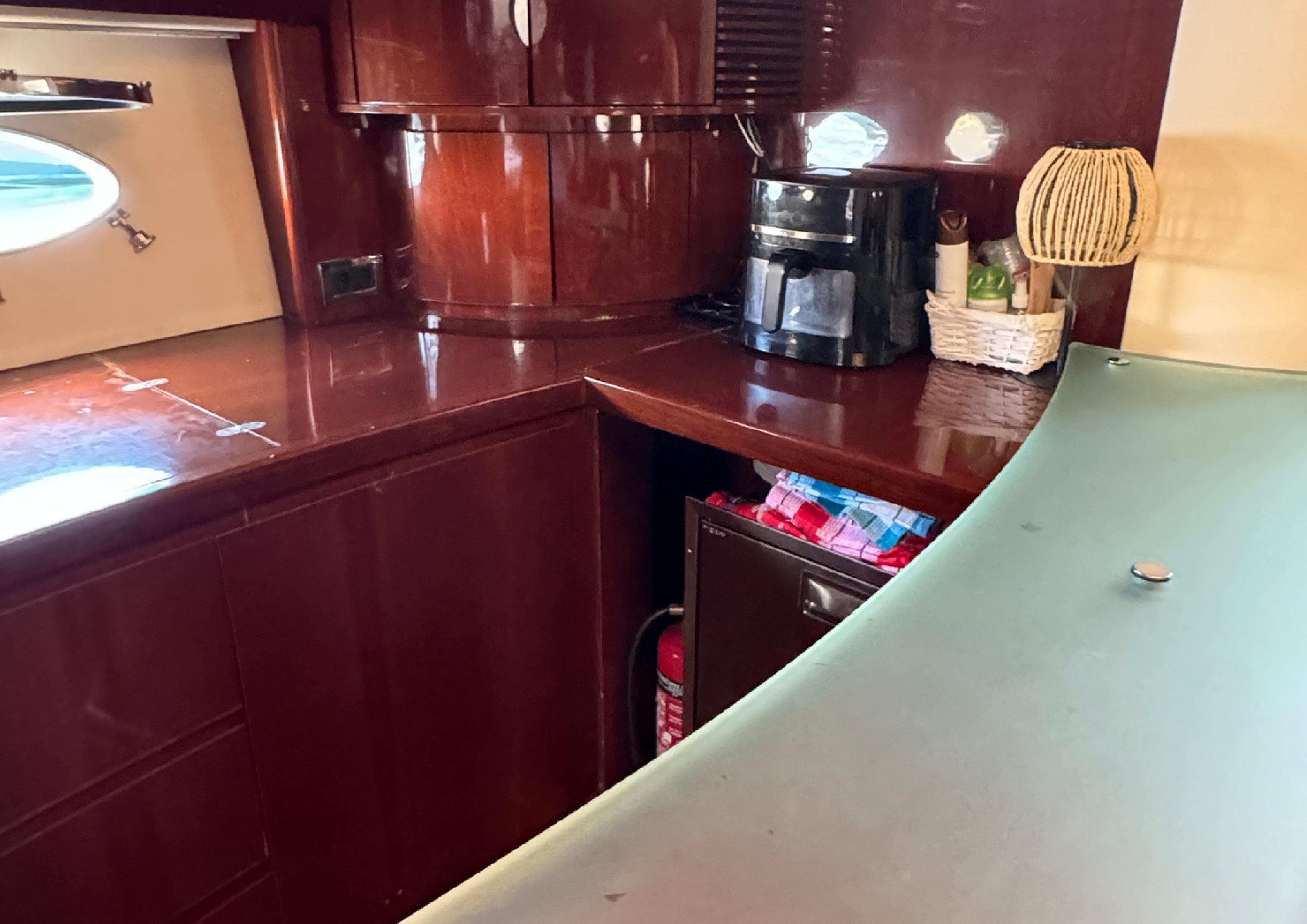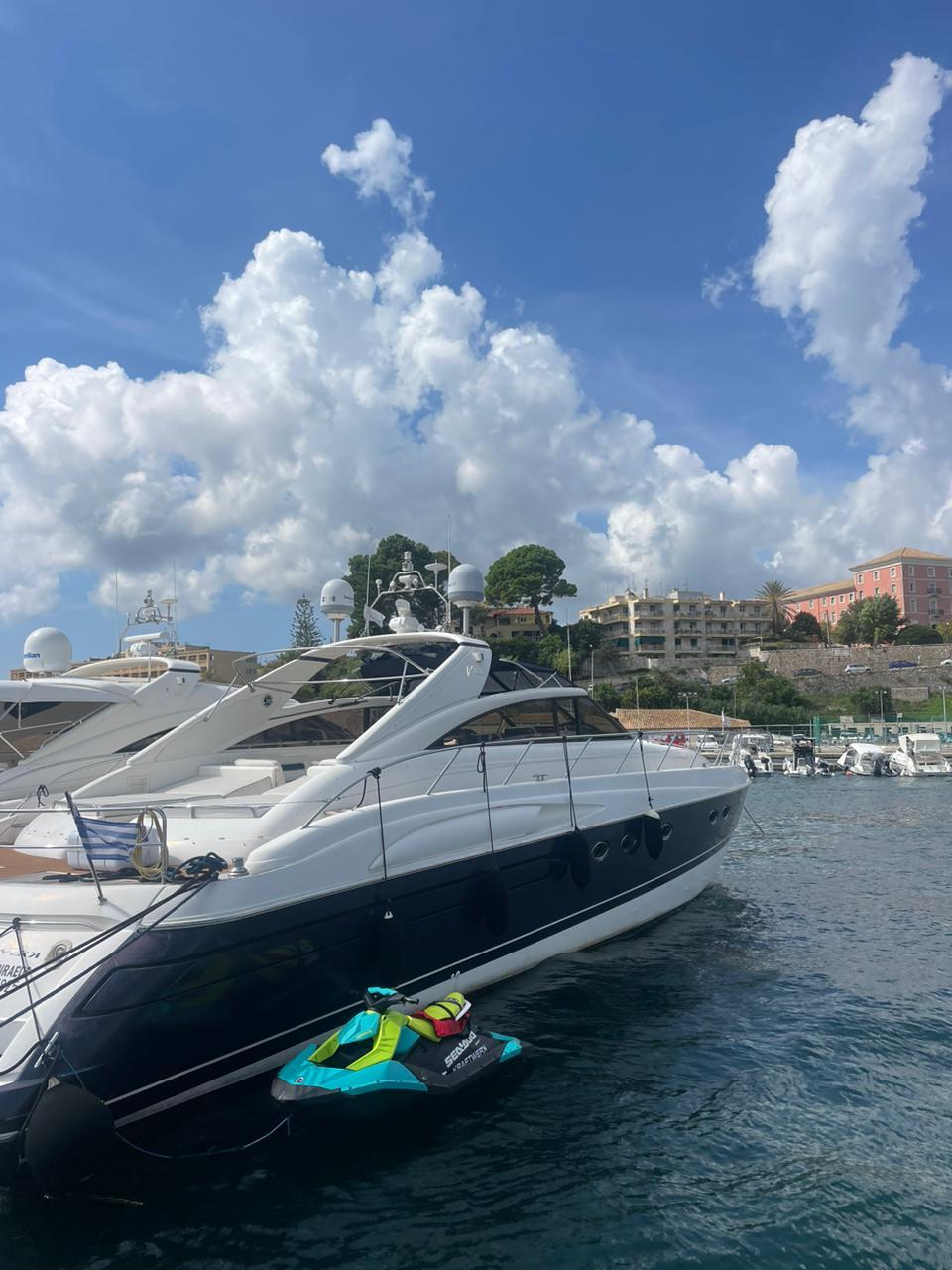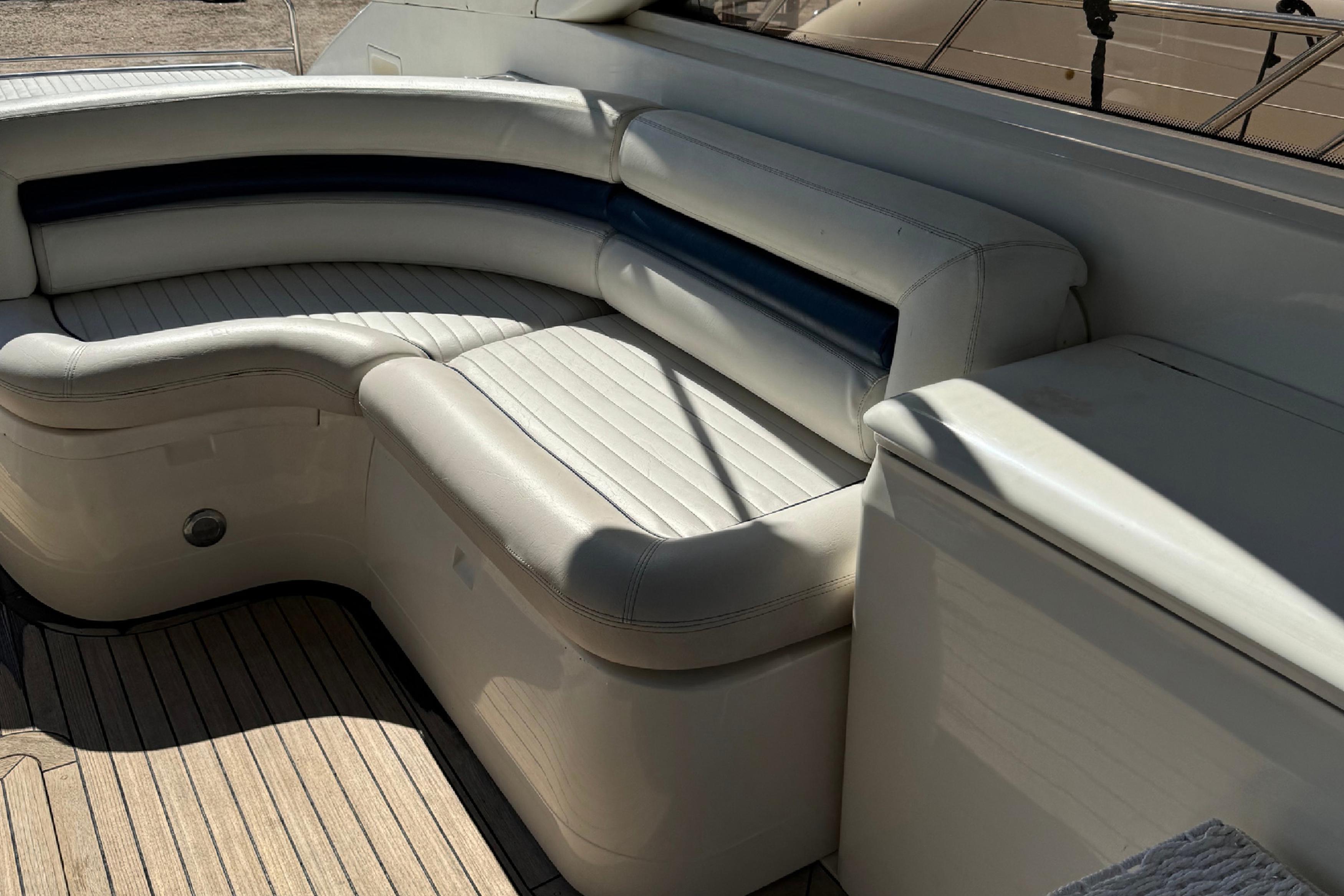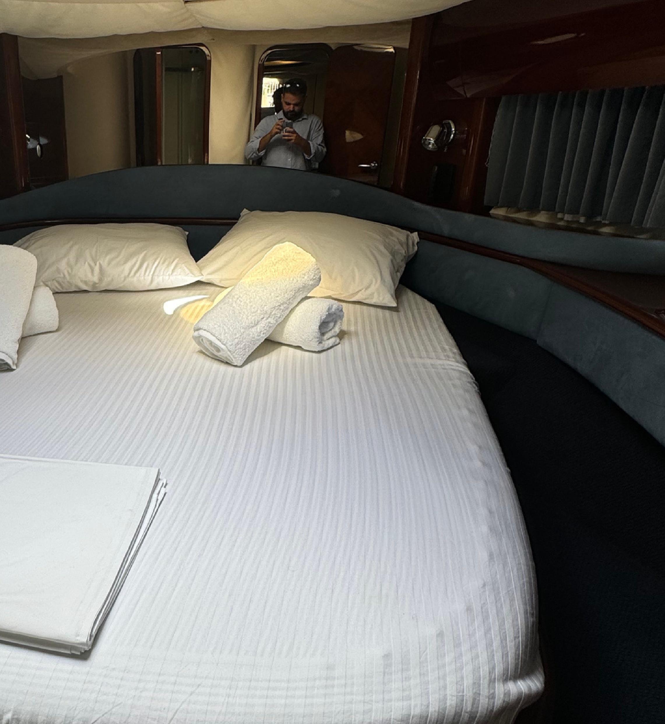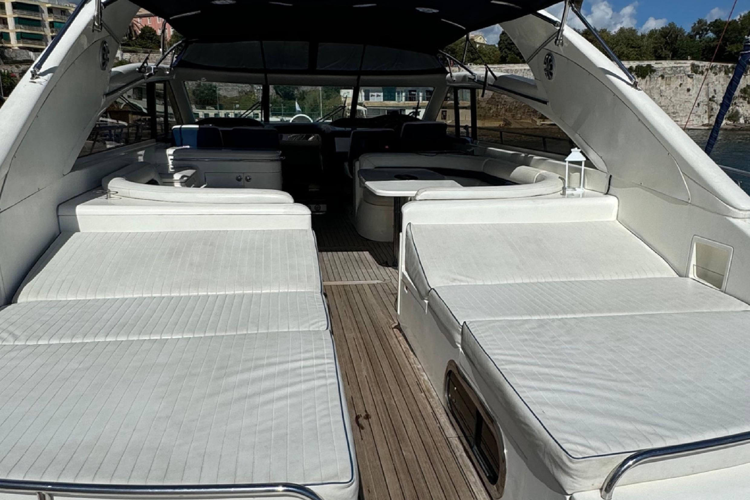 Fast, with 2x 1360HP MAN engines and full with the extra Mediterranean package specs, except the hard top.