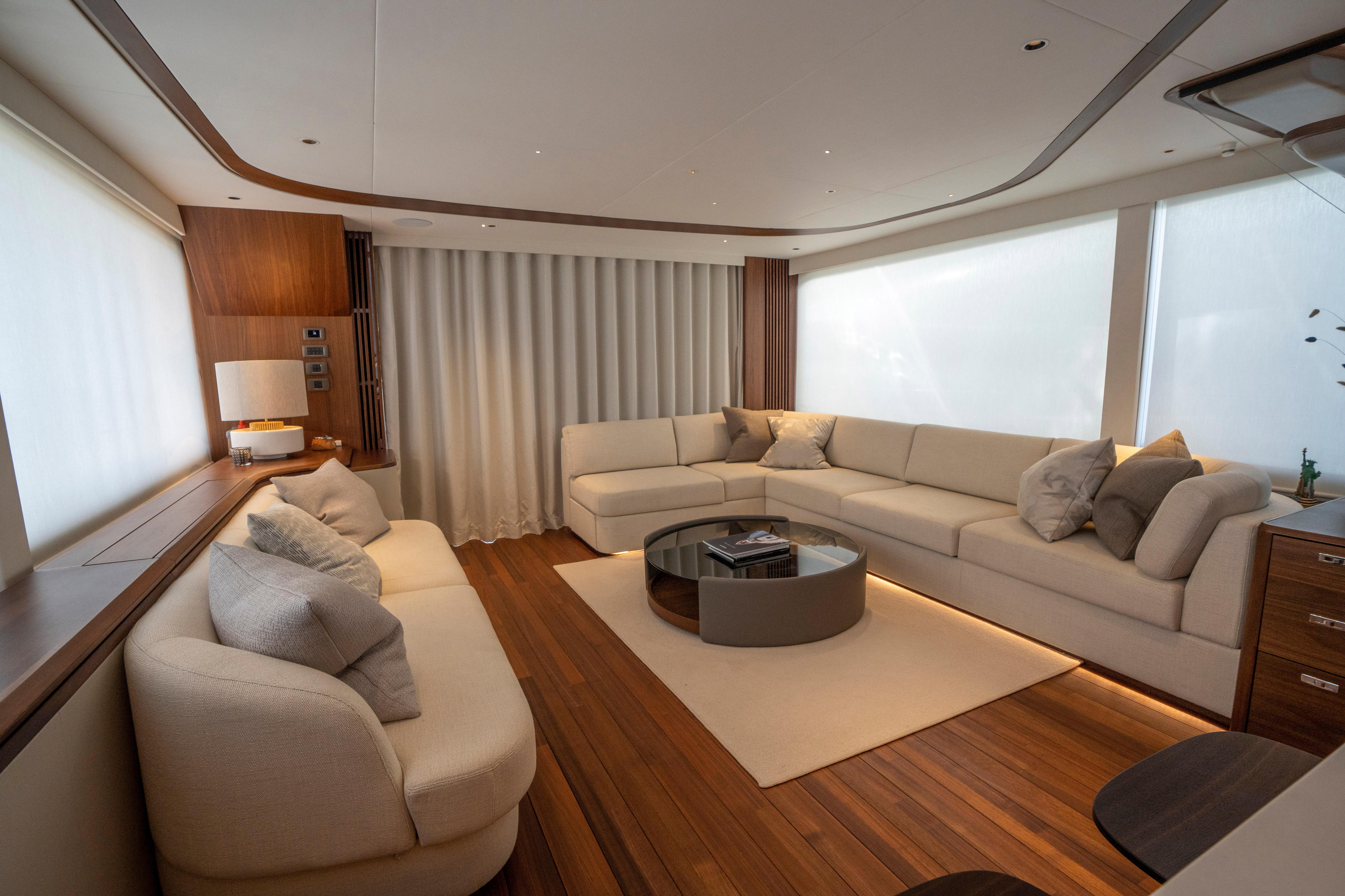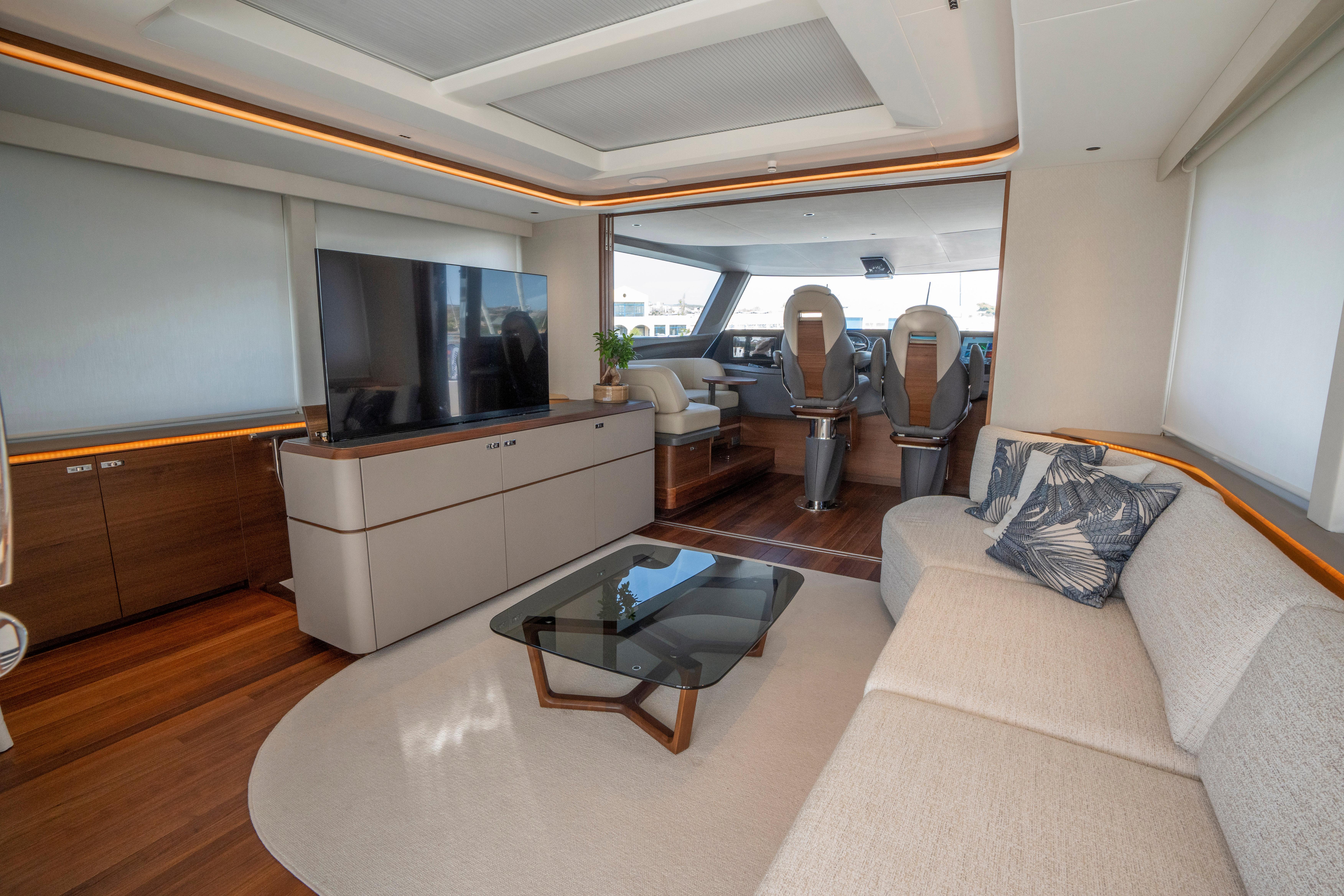 Skylounge 55" TV connected to standard Audio system Cockpit seating area Audio Package Naim audio Uniti Atom system with Bluetooth, multi-zone streaming capability and dedicated app. Paired with JL Audio waterproof speakers (2) a subwoofer and an amplifier.