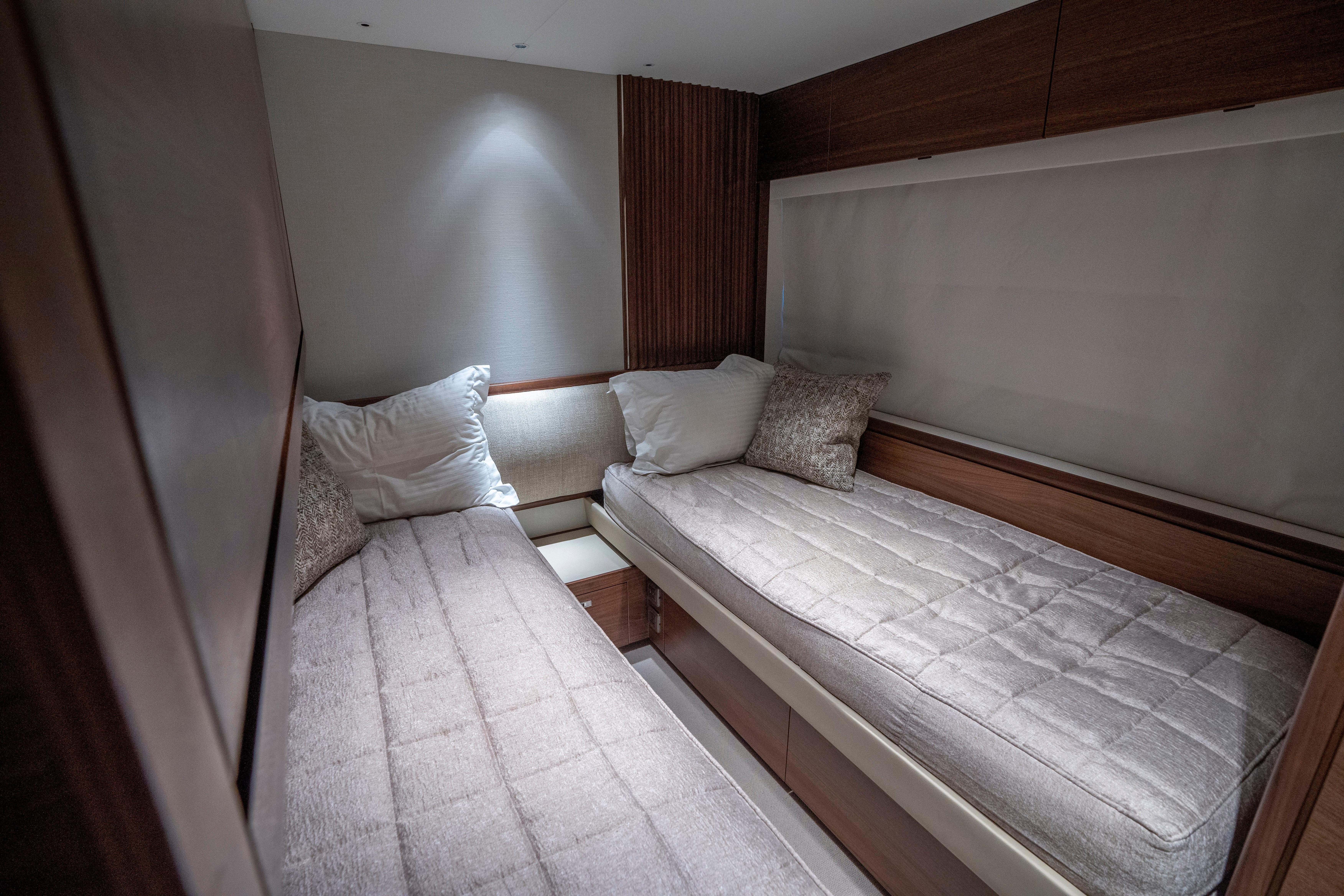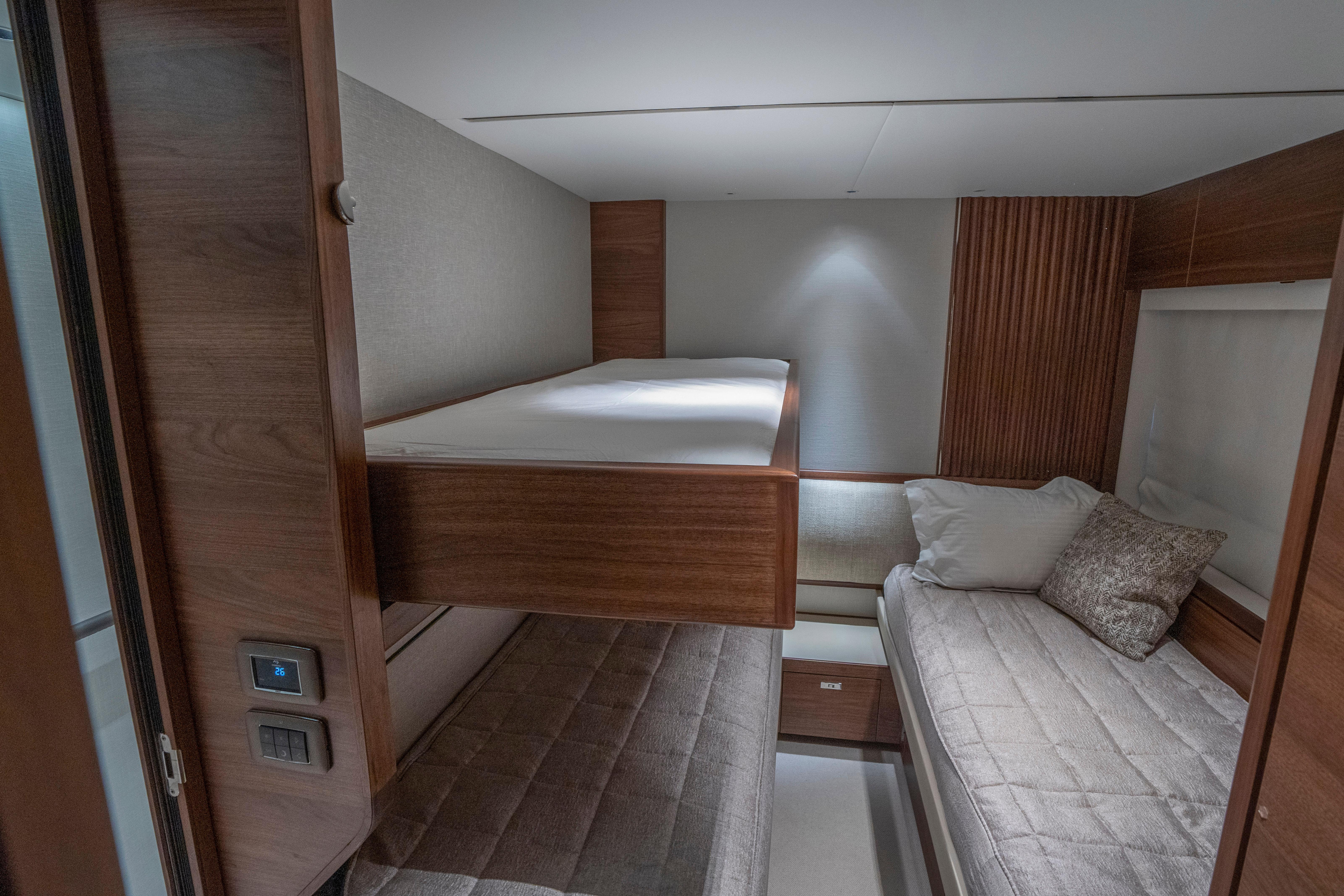 Port cabin to have double berth conversion with powered sliding mechanism on inboard berth.