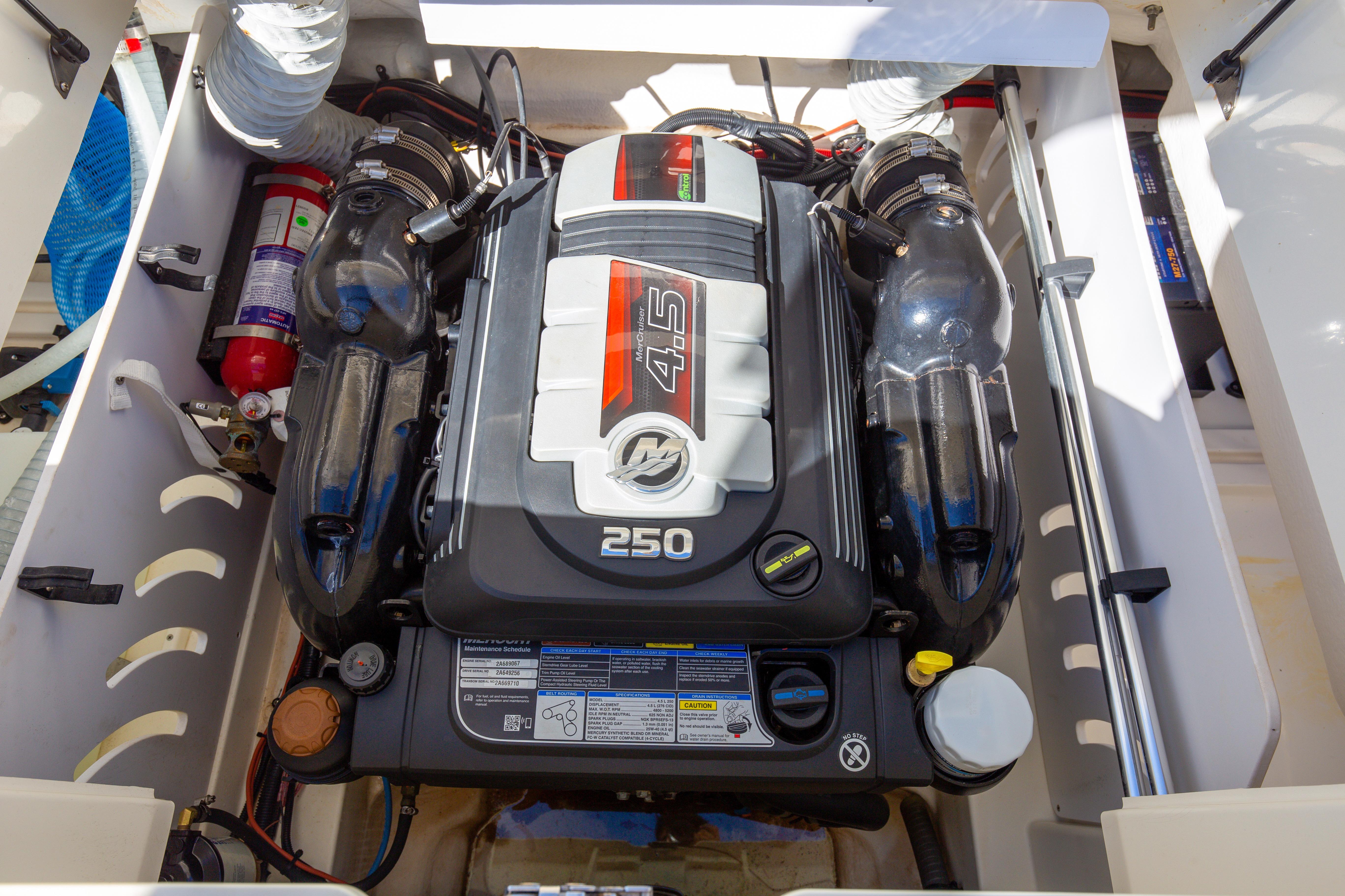 Her inboard, 4.5L, 250 horsepower MerCruiser engine by Mercury Verado also promises this through her powerful performance.