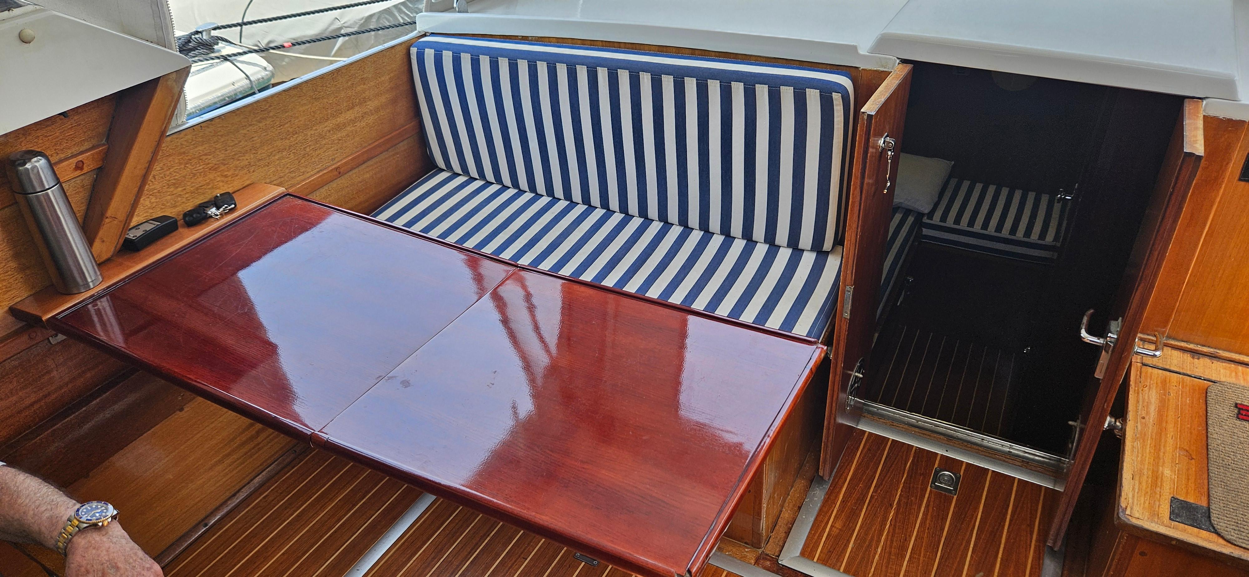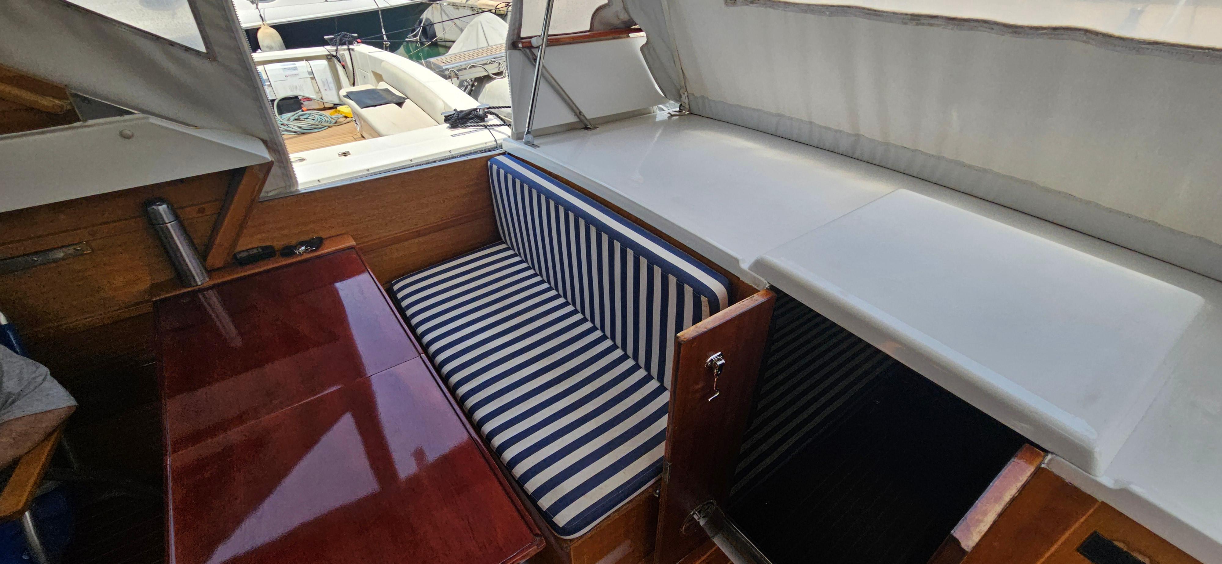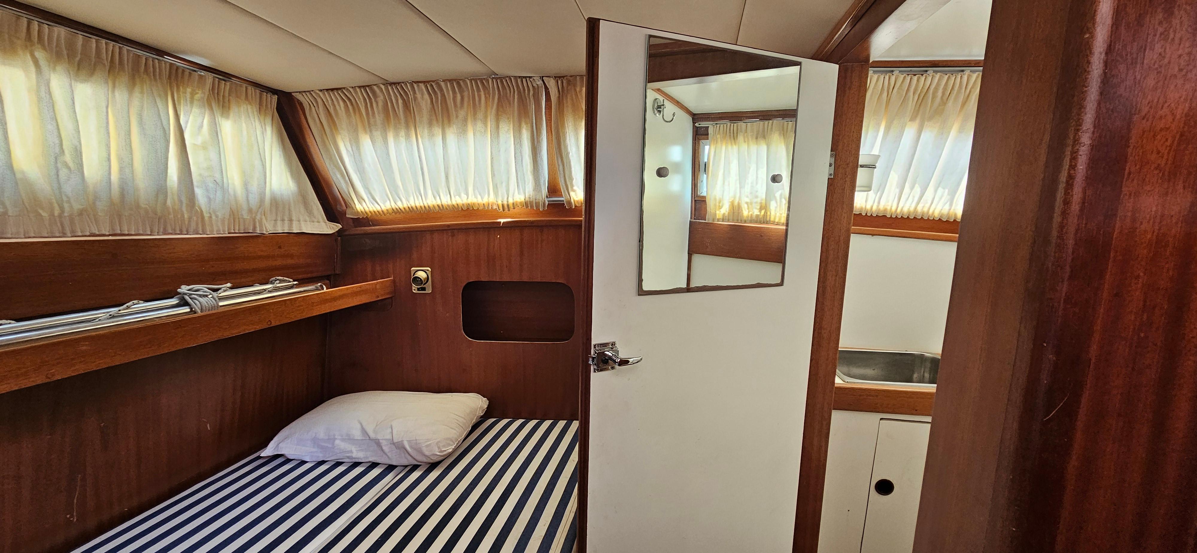 Our boat is under second Greek owner use since 1983 , kept in a very good condition , now lying in the Greek waters and she is lookign for a new owner. She has two cabins with two seperated toilets and really pleasant cockpit area to sail and enjoy friendly gatherings. Mahogany wood is the basic construction material of these boats, which makes them unique and beautiful.