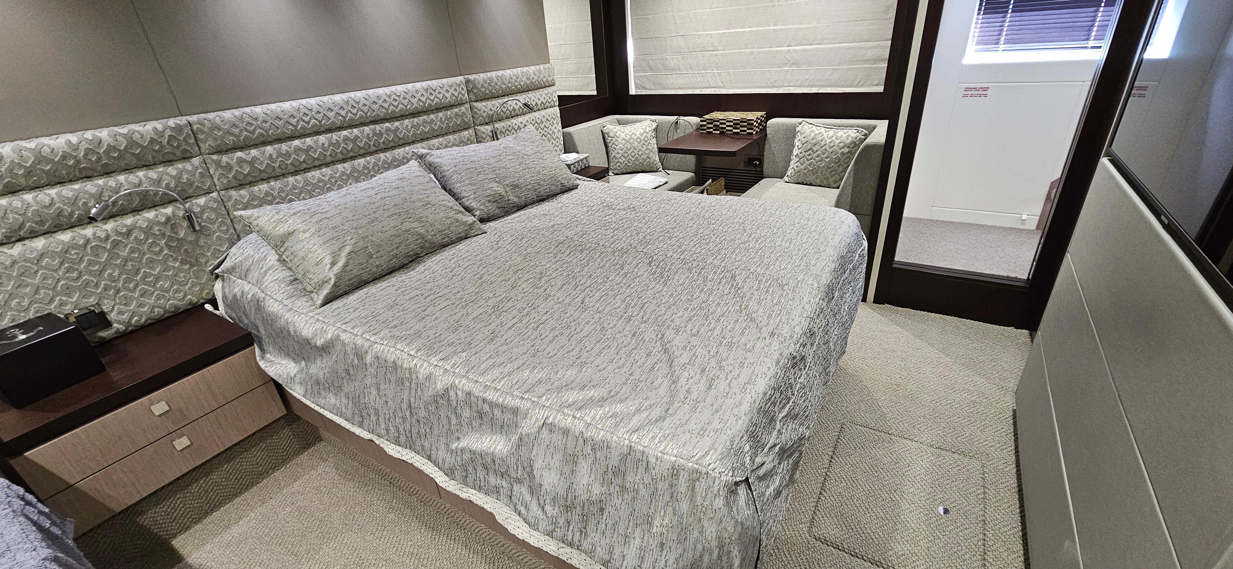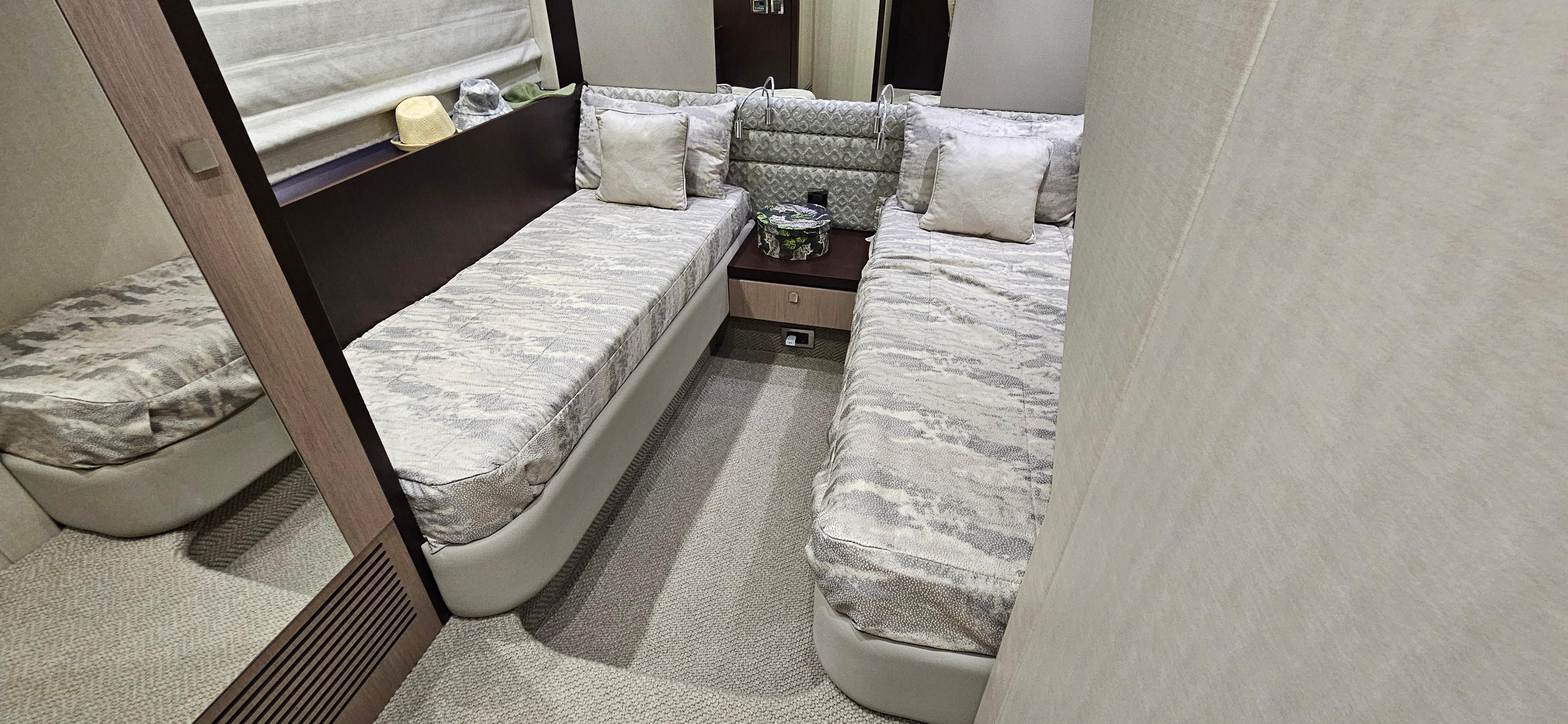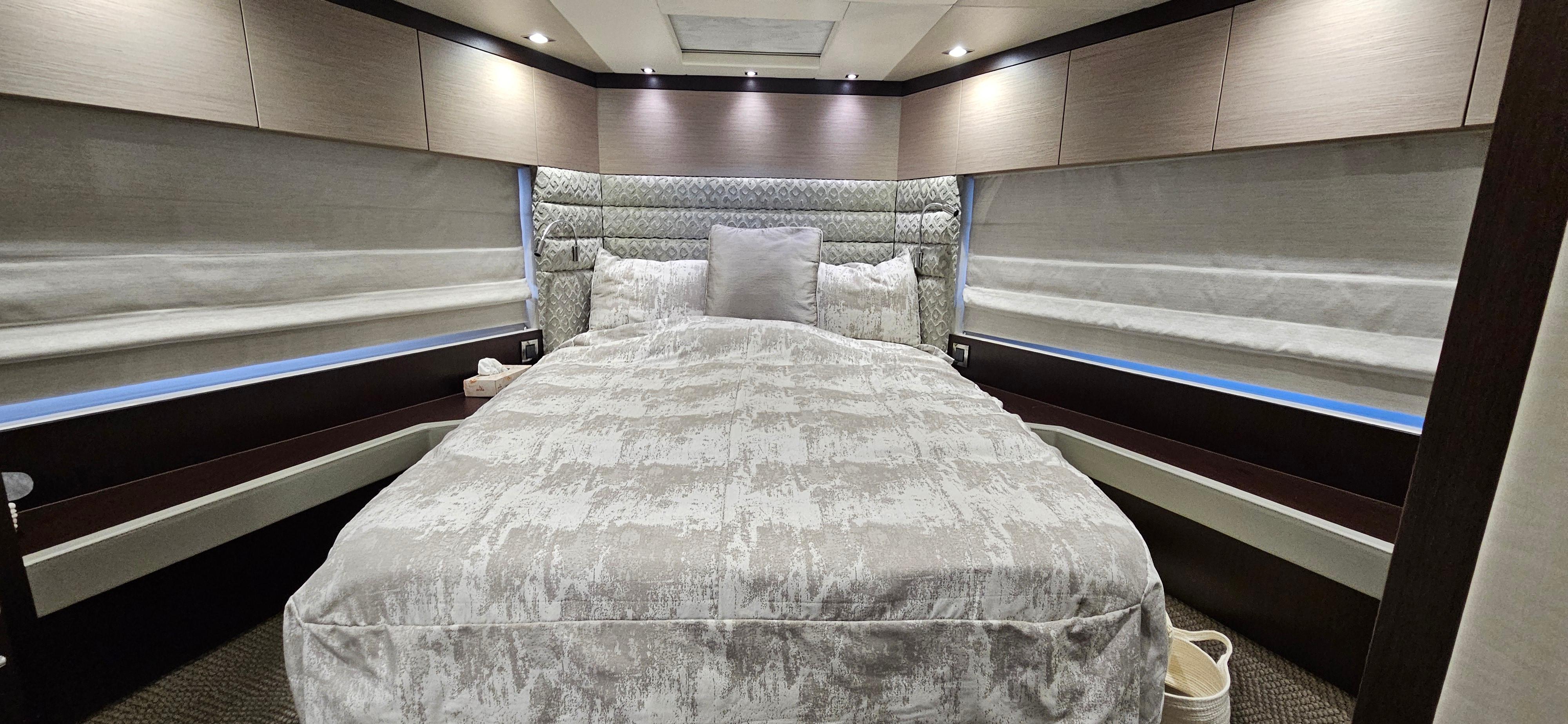 She sports twin V8 MAN engines that will amaze you with their powerful and strong cruising speeds, prepare to feel the greatness of Sunseeker ride!