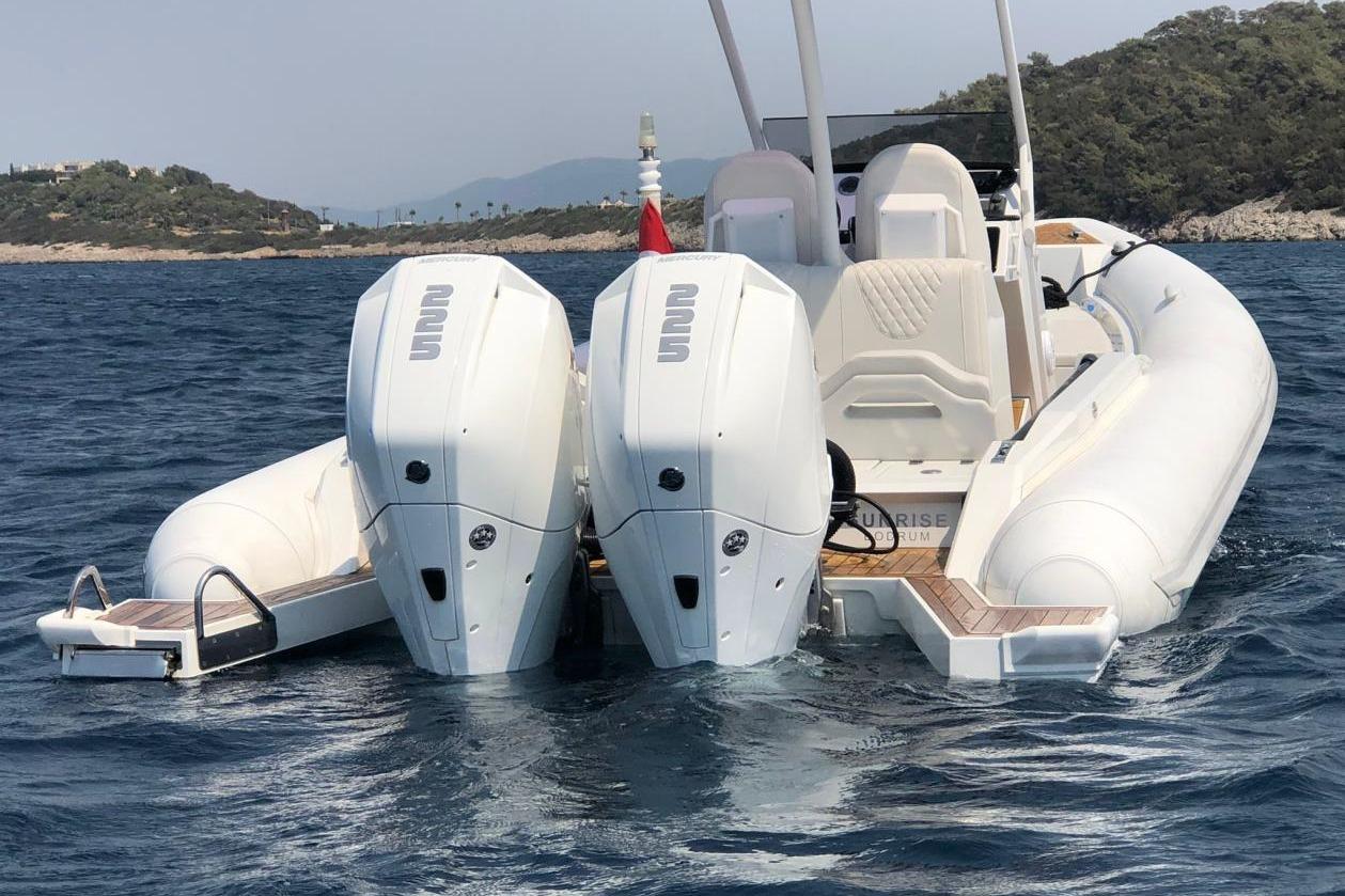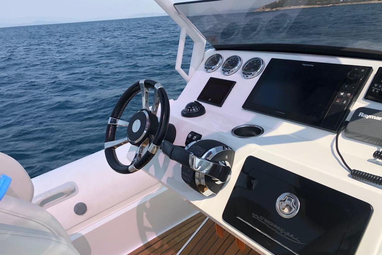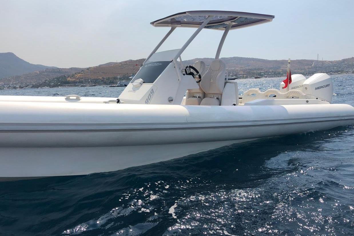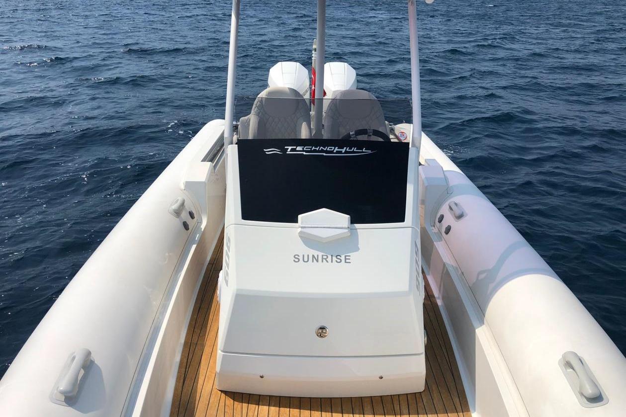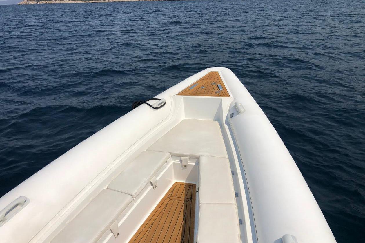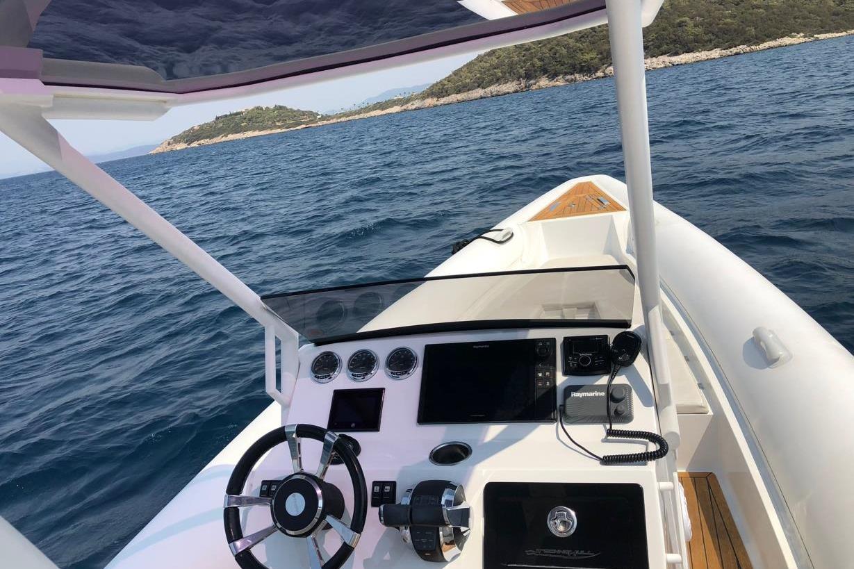 Technohull 909 is a brand new day boat with enhanced offshore features. The ventilating three-step hull design, which allows air to flow underneath it, diminishes water resistance as well as overall friction on the envelope of the boat. This optimizes the RIB’s performance, offering comfortable navigation in conjunction with low fuel consumption. Great attention was paid to her ergonomically designed bow angle, which cuts through the waves in a way that ensures a relaxed ride even at heavy seas or slow speeds. This versatile RIB strikes the perfect equilibrium between size, performance and comfort.
